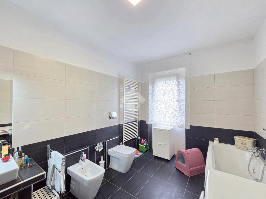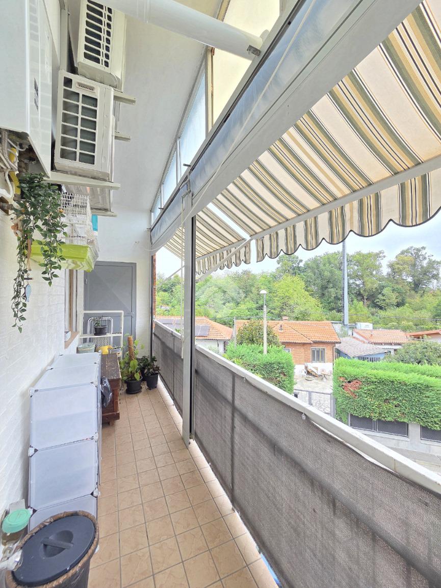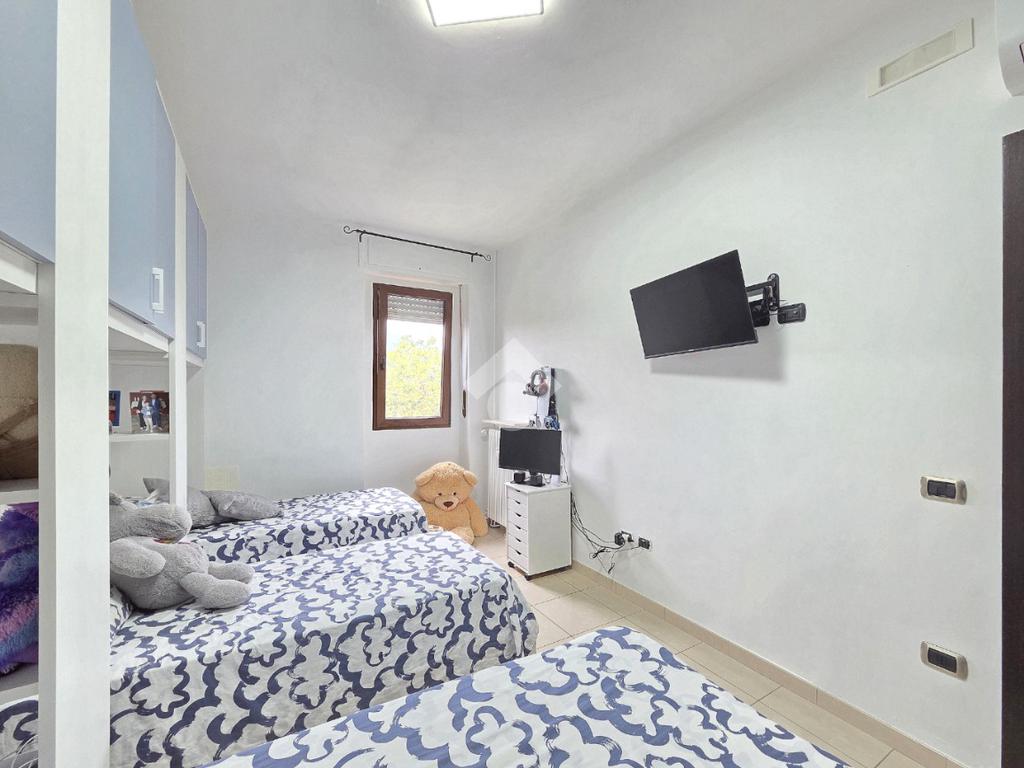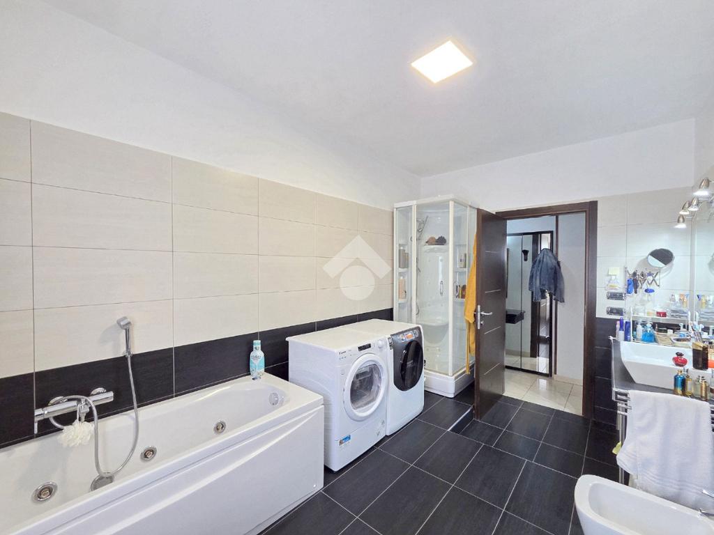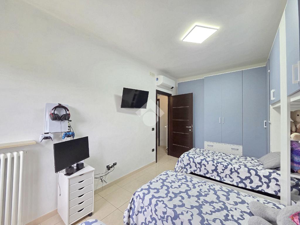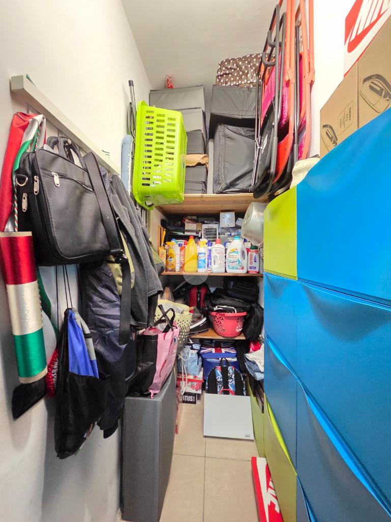 La zona giorno living, accessibile dalla porta blindata, si presenta ampia e luminosa. Caratterizzata dalle lunghe e lineari pareti facilmente arredabili, ospita l'impianto di climatizzazione che funge anche da pompa di calore. Adiacente a quest'ultima, separata da un tramezzo facilmente abbattibile che consentirebbe l'unione dei due locali, è presente il soggiorno. Anch'esso arricchito dall'impianto di climatizzazione, consente di raggiungere il balcone che collega anche il living. Valorizzato dalle tende da sole ed invernali, entrambe a rullo, il balcone affaccia sul lato principale del condominio. Attraverso il disimpegno con funzionalità di antibagno, è possibile raggiungere la zona notte composta da 2 camere matrimoniali, bagno e sala da bagno. La prima camera da letto, adiacente al bagno più piccolo, ospita l'impianto di climatizzazione e si presenta ampia e molto lunga nelle sue pareti. Il primo bagno finestrato ospita la doccia ed è rifinito in simil mosaico. Adiacente ad esso è presente la sala da bagno finestrata. Caratterizzata dalle sue dimensioni, quest'ultima ospita i sanitari a filo muro e, al suo interno trovano spazio la vasca idromassaggio e la doccia angolare idro. Lavatrice ed asciugatrice sono adiacenti tra loro e, il lavandino è in muratura. La seconda camera da letto, anch'essa matrimoniale, è posizionata verso la parte interna del fabbricato ed ancora provvista dell'impianto di climatizzazione. A completare la proprietà del piano è il comodo e funzionale ripostiglio. Posizionato al secondo ed ultimo piano di un fabbricato edificato negli anni '70, l'appartamento gode di una doppia esposizione che lo rende particolarmente luminoso. La cantina è ubicata al piano interrato e, il garage di proprietà è all'interno del cortile accessibile dal carraio meccanizzato. Sicuramente interessante per il suo utilizzo, è il giardino in uso esclusivo posizionato nella parte più riservata del condominio. Grazie alla completa ristrutturazione, l'appartamento si presenta abitabile da subito senza intervento alcuno, compresi gli infissi esterni.