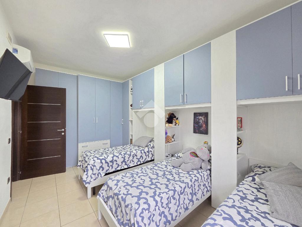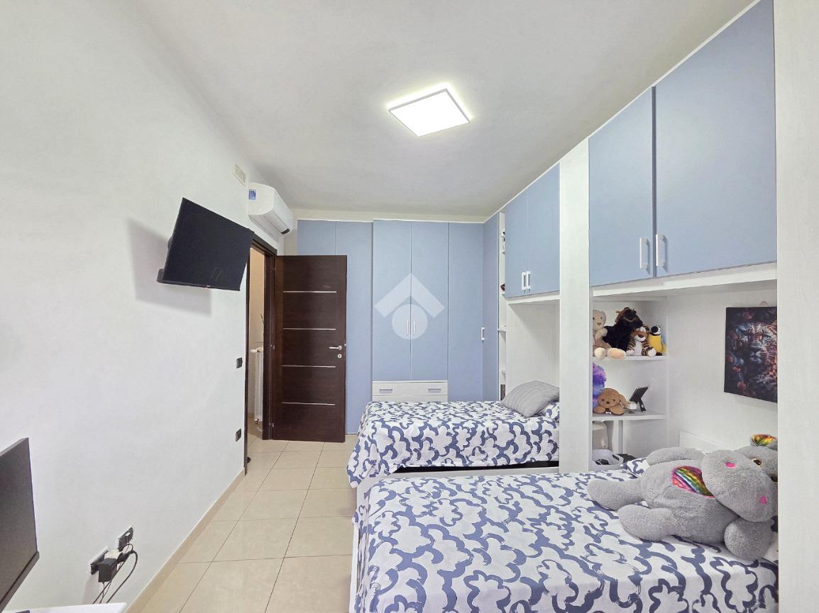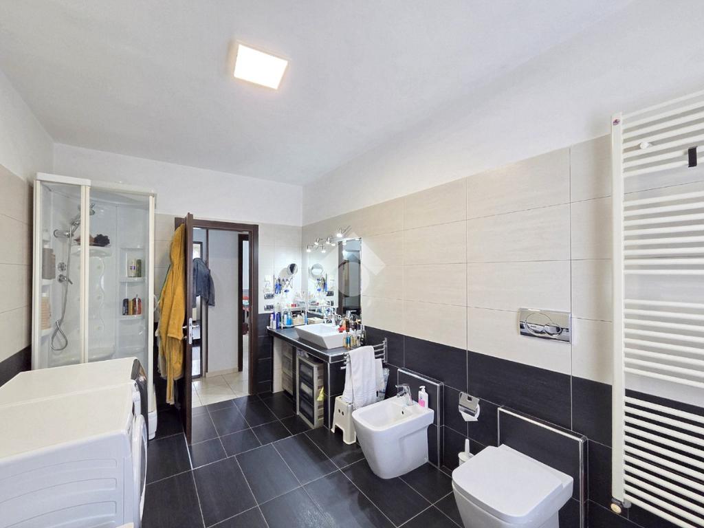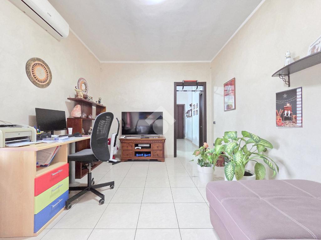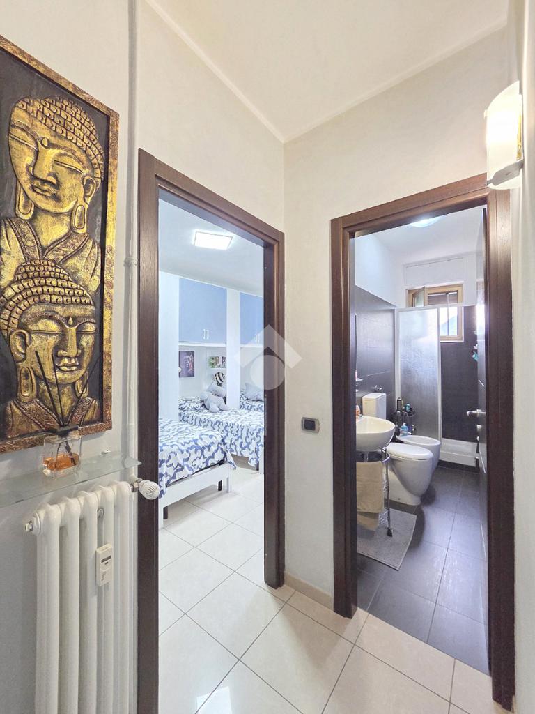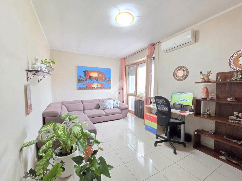 La zona giorno living, accessibile dalla porta blindata, si presenta ampia e luminosa. Caratterizzata dalle lunghe e lineari pareti facilmente arredabili, ospita l'impianto di climatizzazione che funge anche da pompa di calore. Adiacente a quest'ultima, separata da un tramezzo facilmente abbattibile che consentirebbe l'unione dei due locali, è presente il soggiorno. Anch'esso arricchito dall'impianto di climatizzazione, consente di raggiungere il balcone che collega anche il living. Valorizzato dalle tende da sole ed invernali, entrambe a rullo, il balcone affaccia sul lato principale del condominio. Attraverso il disimpegno con funzionalità di antibagno, è possibile raggiungere la zona notte composta da 2 camere matrimoniali, bagno e sala da bagno. La prima camera da letto, adiacente al bagno più piccolo, ospita l'impianto di climatizzazione e si presenta ampia e molto lunga nelle sue pareti. Il primo bagno finestrato ospita la doccia ed è rifinito in simil mosaico. Adiacente ad esso è presente la sala da bagno finestrata. Caratterizzata dalle sue dimensioni, quest'ultima ospita i sanitari a filo muro e, al suo interno trovano spazio la vasca idromassaggio e la doccia angolare idro. Lavatrice ed asciugatrice sono adiacenti tra loro e, il lavandino è in muratura. La seconda camera da letto, anch'essa matrimoniale, è posizionata verso la parte interna del fabbricato ed ancora provvista dell'impianto di climatizzazione. A completare la proprietà del piano è il comodo e funzionale ripostiglio. Posizionato al secondo ed ultimo piano di un fabbricato edificato negli anni '70, l'appartamento gode di una doppia esposizione che lo rende particolarmente luminoso. La cantina è ubicata al piano interrato e, il garage di proprietà è all'interno del cortile accessibile dal carraio meccanizzato. Sicuramente interessante per il suo utilizzo, è il giardino in uso esclusivo posizionato nella parte più riservata del condominio. Grazie alla completa ristrutturazione, l'appartamento si presenta abitabile da subito senza intervento alcuno, compresi gli infissi esterni.