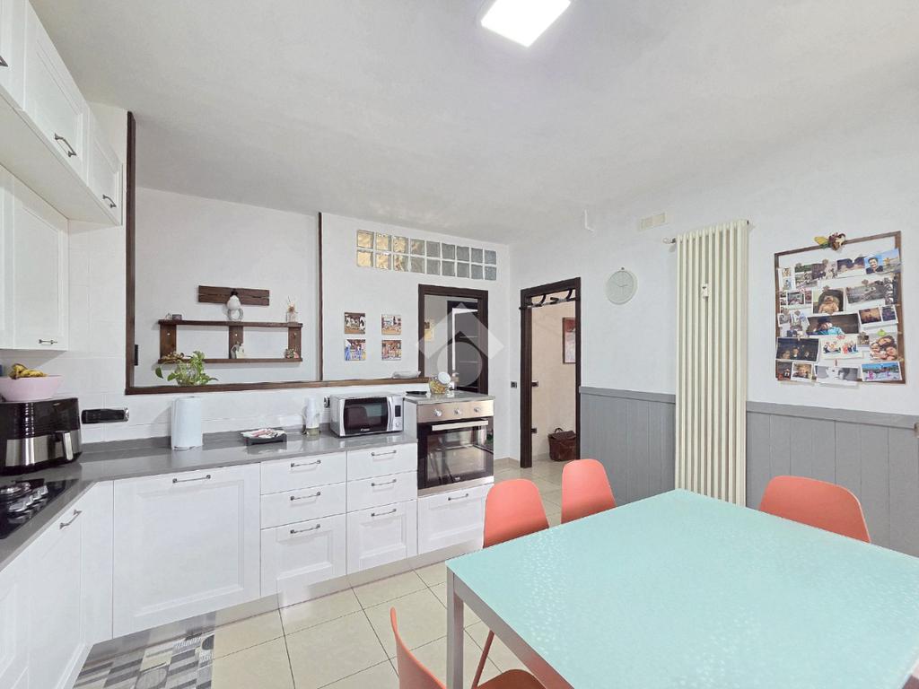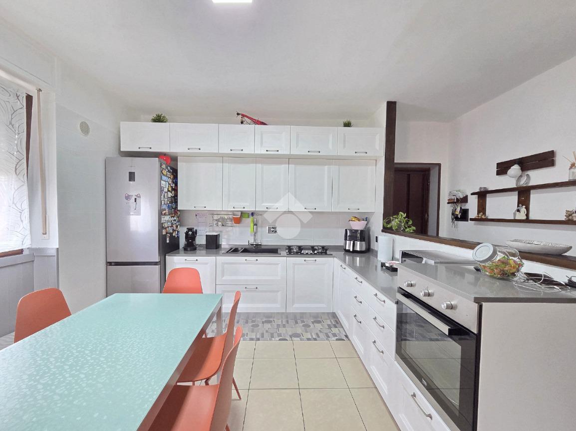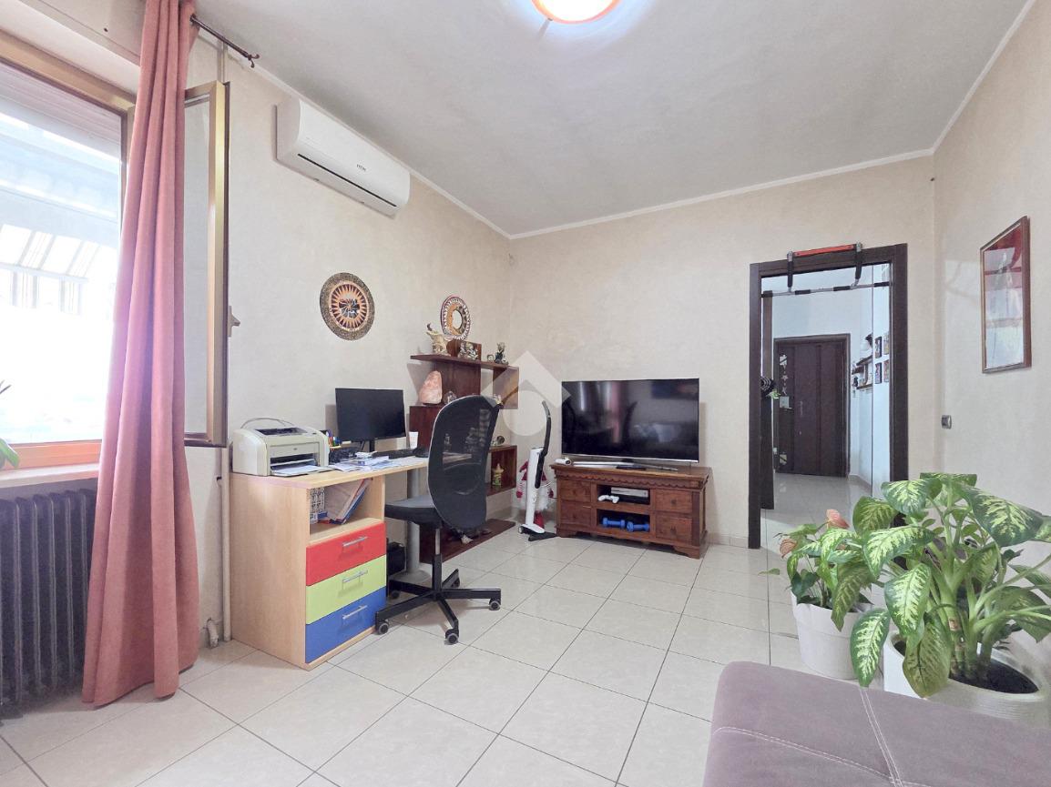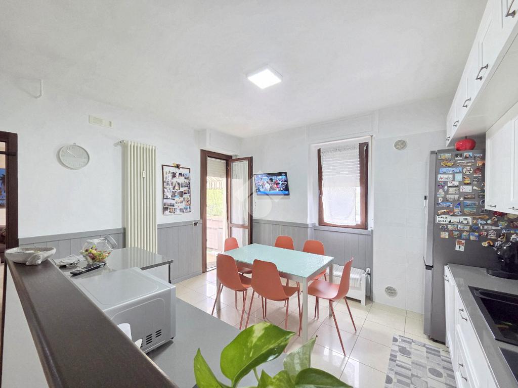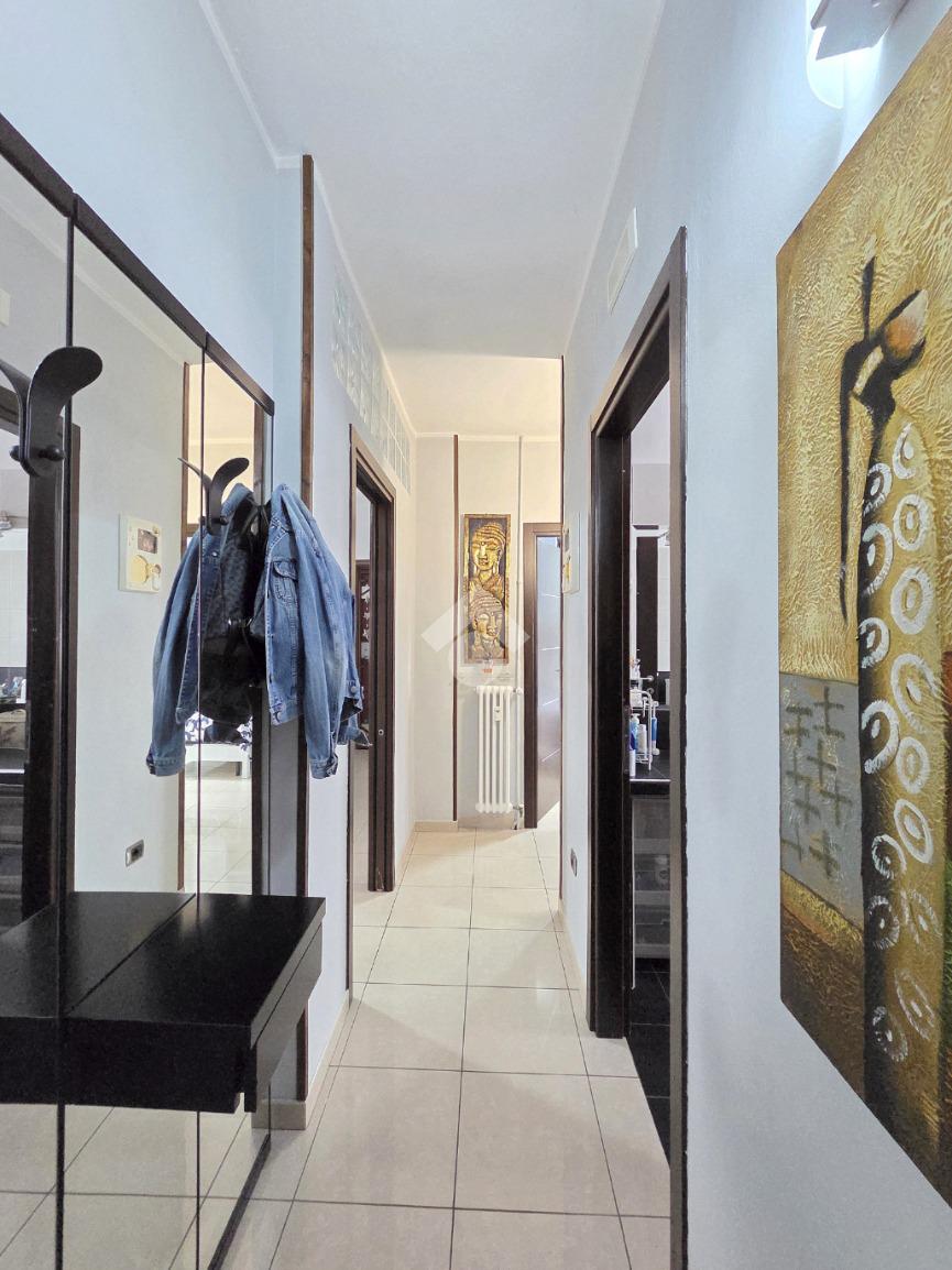 La zona giorno living, accessibile dalla porta blindata, si presenta ampia e luminosa. Caratterizzata dalle lunghe e lineari pareti facilmente arredabili, ospita l'impianto di climatizzazione che funge anche da pompa di calore. Adiacente a quest'ultima, separata da un tramezzo facilmente abbattibile che consentirebbe l'unione dei due locali, è presente il soggiorno. Anch'esso arricchito dall'impianto di climatizzazione, consente di raggiungere il balcone che collega anche il living. Valorizzato dalle tende da sole ed invernali, entrambe a rullo, il balcone affaccia sul lato principale del condominio. Attraverso il disimpegno con funzionalità di antibagno, è possibile raggiungere la zona notte composta da 2 camere matrimoniali, bagno e sala da bagno. La prima camera da letto, adiacente al bagno più piccolo, ospita l'impianto di climatizzazione e si presenta ampia e molto lunga nelle sue pareti. Il primo bagno finestrato ospita la doccia ed è rifinito in simil mosaico. Adiacente ad esso è presente la sala da bagno finestrata. Caratterizzata dalle sue dimensioni, quest'ultima ospita i sanitari a filo muro e, al suo interno trovano spazio la vasca idromassaggio e la doccia angolare idro. Lavatrice ed asciugatrice sono adiacenti tra loro e, il lavandino è in muratura. La seconda camera da letto, anch'essa matrimoniale, è posizionata verso la parte interna del fabbricato ed ancora provvista dell'impianto di climatizzazione. A completare la proprietà del piano è il comodo e funzionale ripostiglio. Posizionato al secondo ed ultimo piano di un fabbricato edificato negli anni '70, l'appartamento gode di una doppia esposizione che lo rende particolarmente luminoso. La cantina è ubicata al piano interrato e, il garage di proprietà è all'interno del cortile accessibile dal carraio meccanizzato. Sicuramente interessante per il suo utilizzo, è il giardino in uso esclusivo posizionato nella parte più riservata del condominio. Grazie alla completa ristrutturazione, l'appartamento si presenta abitabile da subito senza intervento alcuno, compresi gli infissi esterni.