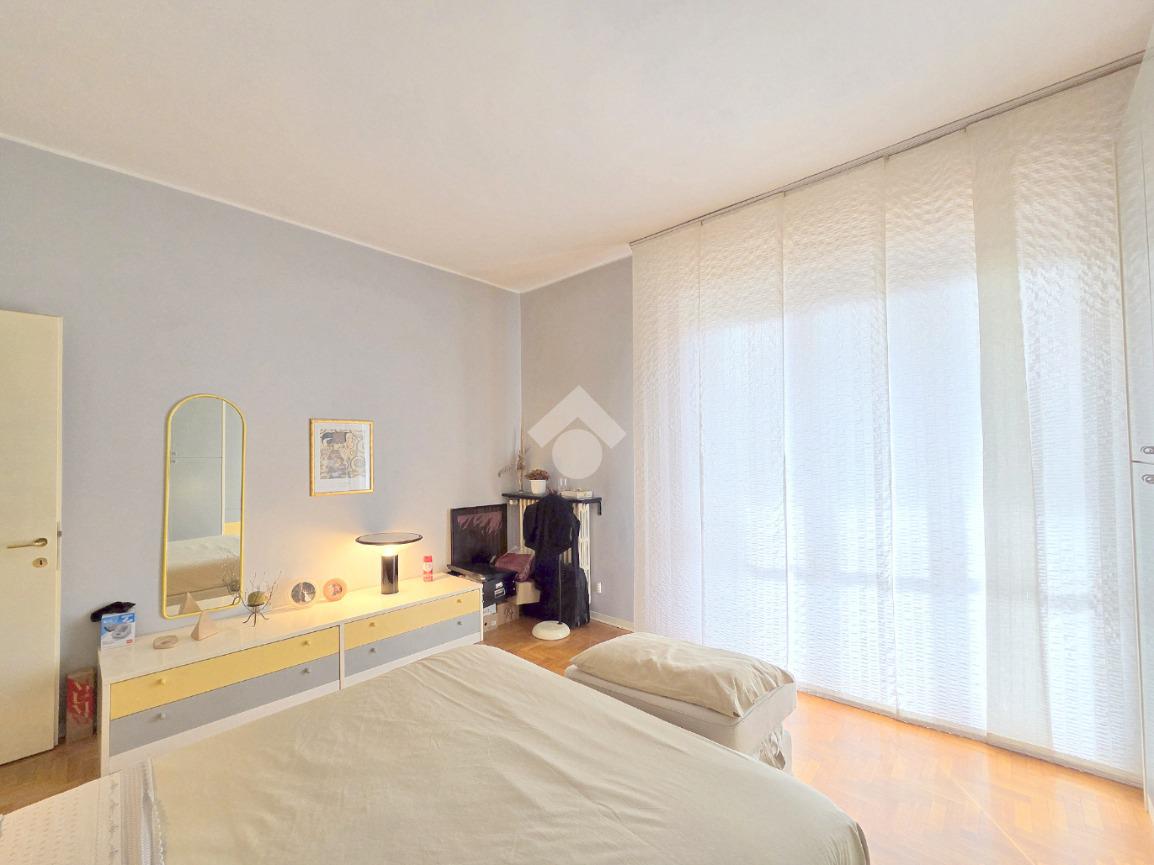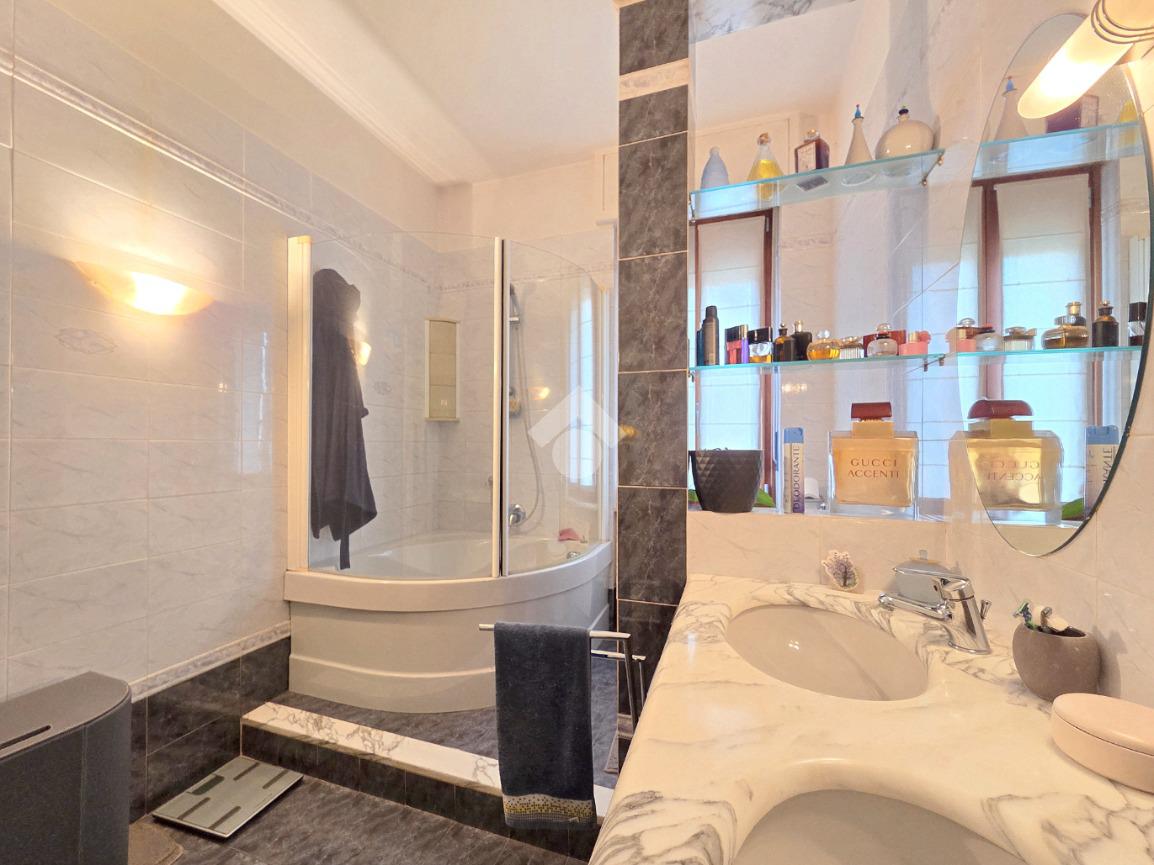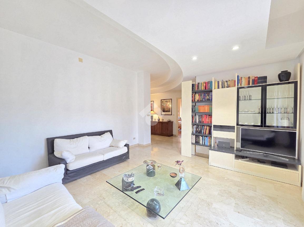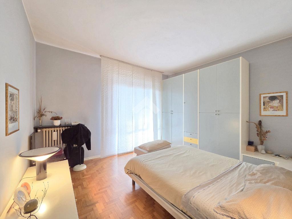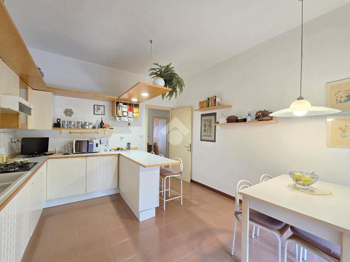 Inserito in un piccolo contesto abitativo edificato negli anni '70, privo di amministratore e di spese condominiali, l'appartamento è posizionato al primo piano di due e possiede una tripla esposizione. Caratterizzato dalla splendida controsoffittatura curva che ospita l'illuminazione a faretti, il soggiorno si presenta ampio e luminoso. La sua pavimentazione in marmo bianco percorre anche il grande disimpegno, donando una piacevole omogeneità. L'accesso al primo terrazzino, arricchito dalle tende da sole a rullo, è possibile dal salone e dalla cucina. Percorrendo il balcone angolare e, raggiunta la cucina, è subito percepibile la sua comoda abitabilità. Valorizzata dalla penisola, quest'ultima è particolarmente lineare e facilmente arredabile. Volendo è possibile abbattere il muro che divide soggiorno e cucina. L'ingresso dalla porta blindata avviene sull'ampio disimpegno che ospita il ripostiglio, dal quale è possibile raggiungere ogni locale dell'appartamento. Le camere da letto sono due, entrambe matrimoniali ed entrambe pavimentate in legno posato a lisca di pesce. Il secondo balcone, questa volta lineare, dà accesso ad entrambe le camere. L'ampio bagno finestrato, affaccia sul terzo lato del fabbricato e, le sue dimensioni hanno permesso la posa del doppio lavello. Attentamente disimpegnati, i sanitari sono di fronte alla grande vasca angolare, che funge anche da doccia grazie al suo box in cristallo. La cantina di proprietà è ubicata al piano interrato, mentre il garage è al piano terreno all'interno del cortile. Indubbiamente gradevole è il giardino in uso esclusivo, ideale per le giornate soleggiate, posizionato verso il lato più riservato del fabbricato. Le parti comuni dell'edificio sono ordinate e, non sono previsti lavori straordinari. Il mercato, il centro commerciale così come le scuole ed i mezzi pubblici sono raggiungibili a piedi.