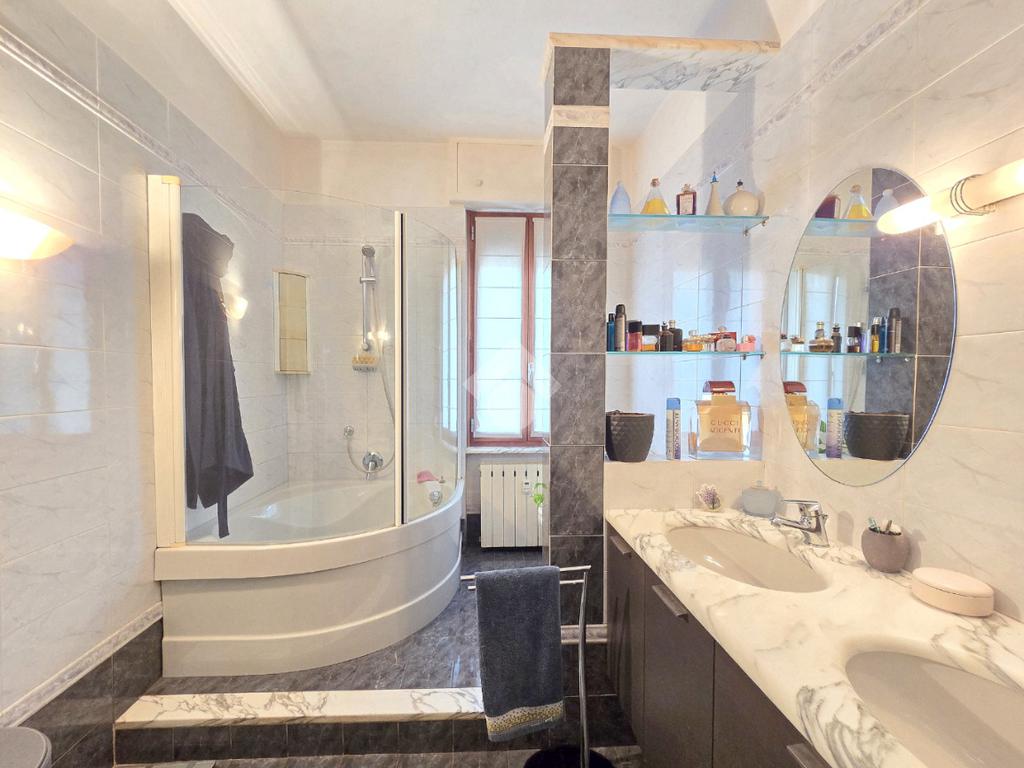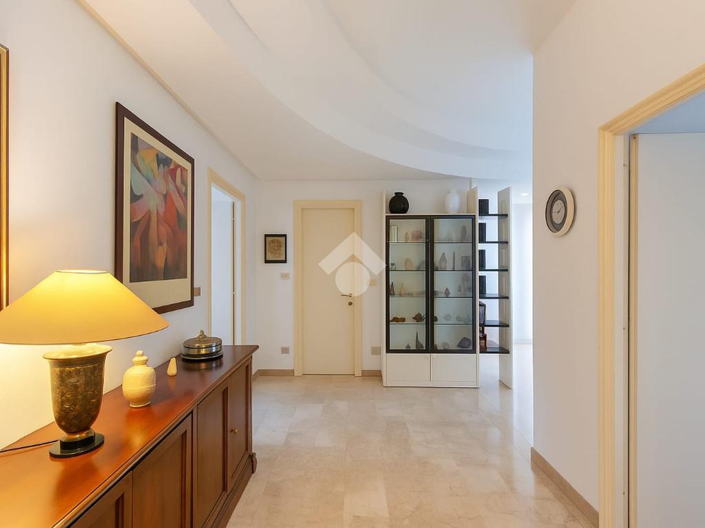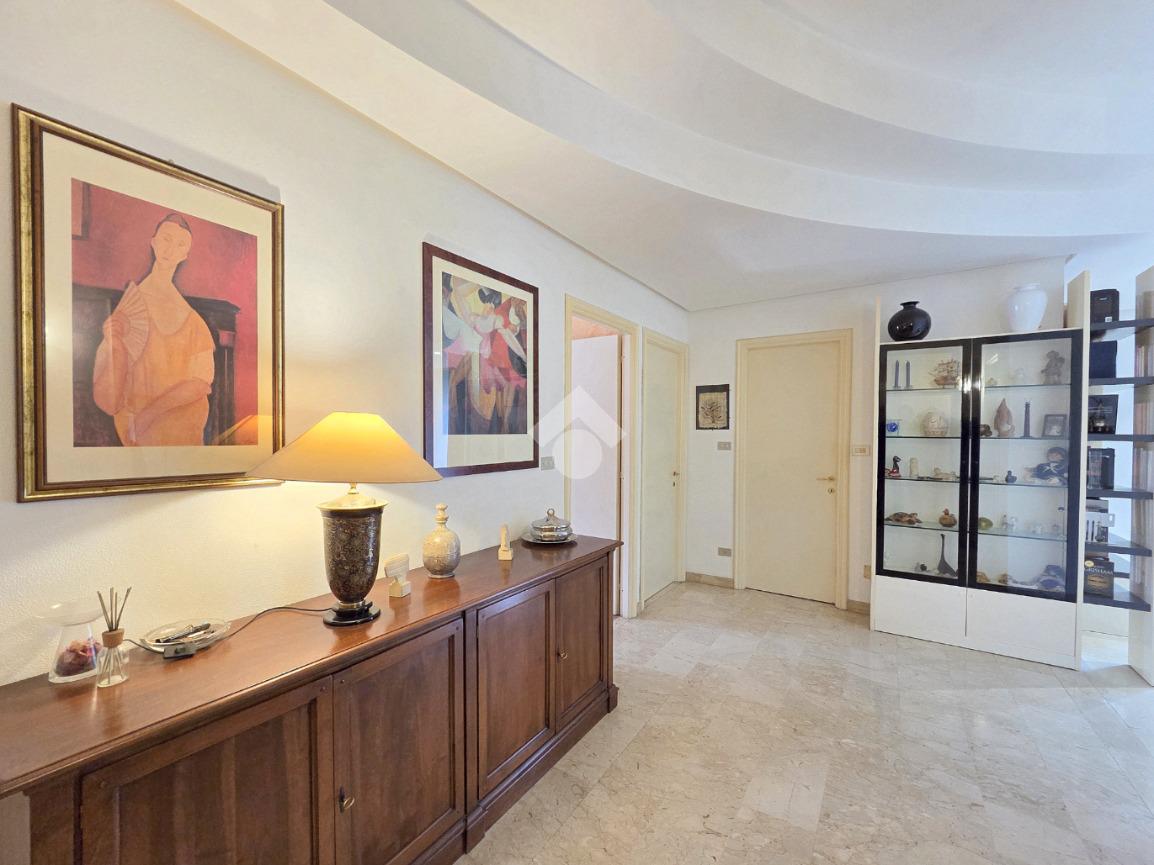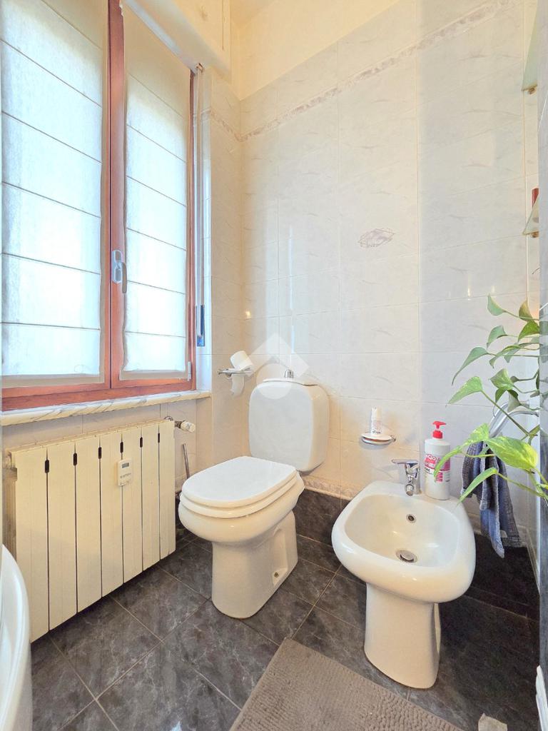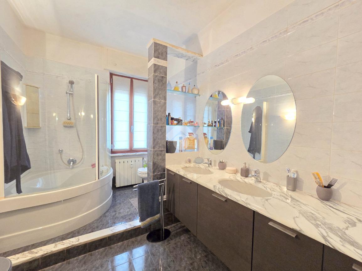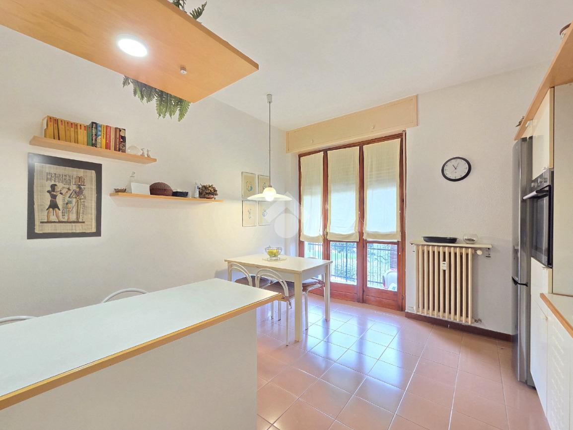 Inserito in un piccolo contesto abitativo edificato negli anni '70, privo di amministratore e di spese condominiali, l'appartamento è posizionato al primo piano di due e possiede una tripla esposizione. Caratterizzato dalla splendida controsoffittatura curva che ospita l'illuminazione a faretti, il soggiorno si presenta ampio e luminoso. La sua pavimentazione in marmo bianco percorre anche il grande disimpegno, donando una piacevole omogeneità. L'accesso al primo terrazzino, arricchito dalle tende da sole a rullo, è possibile dal salone e dalla cucina. Percorrendo il balcone angolare e, raggiunta la cucina, è subito percepibile la sua comoda abitabilità. Valorizzata dalla penisola, quest'ultima è particolarmente lineare e facilmente arredabile. Volendo è possibile abbattere il muro che divide soggiorno e cucina. L'ingresso dalla porta blindata avviene sull'ampio disimpegno che ospita il ripostiglio, dal quale è possibile raggiungere ogni locale dell'appartamento. Le camere da letto sono due, entrambe matrimoniali ed entrambe pavimentate in legno posato a lisca di pesce. Il secondo balcone, questa volta lineare, dà accesso ad entrambe le camere. L'ampio bagno finestrato, affaccia sul terzo lato del fabbricato e, le sue dimensioni hanno permesso la posa del doppio lavello. Attentamente disimpegnati, i sanitari sono di fronte alla grande vasca angolare, che funge anche da doccia grazie al suo box in cristallo. La cantina di proprietà è ubicata al piano interrato, mentre il garage è al piano terreno all'interno del cortile. Indubbiamente gradevole è il giardino in uso esclusivo, ideale per le giornate soleggiate, posizionato verso il lato più riservato del fabbricato. Le parti comuni dell'edificio sono ordinate e, non sono previsti lavori straordinari. Il mercato, il centro commerciale così come le scuole ed i mezzi pubblici sono raggiungibili a piedi.