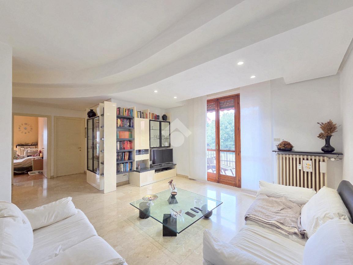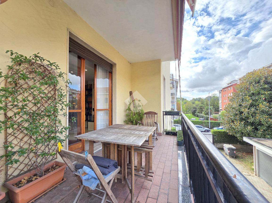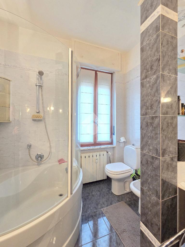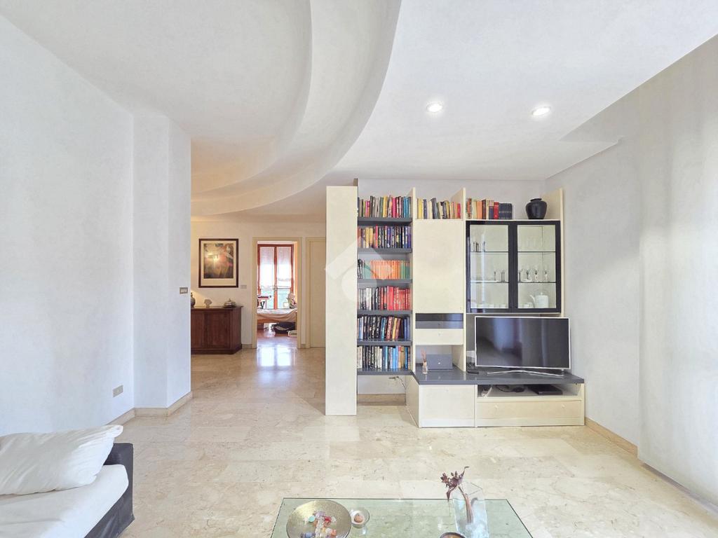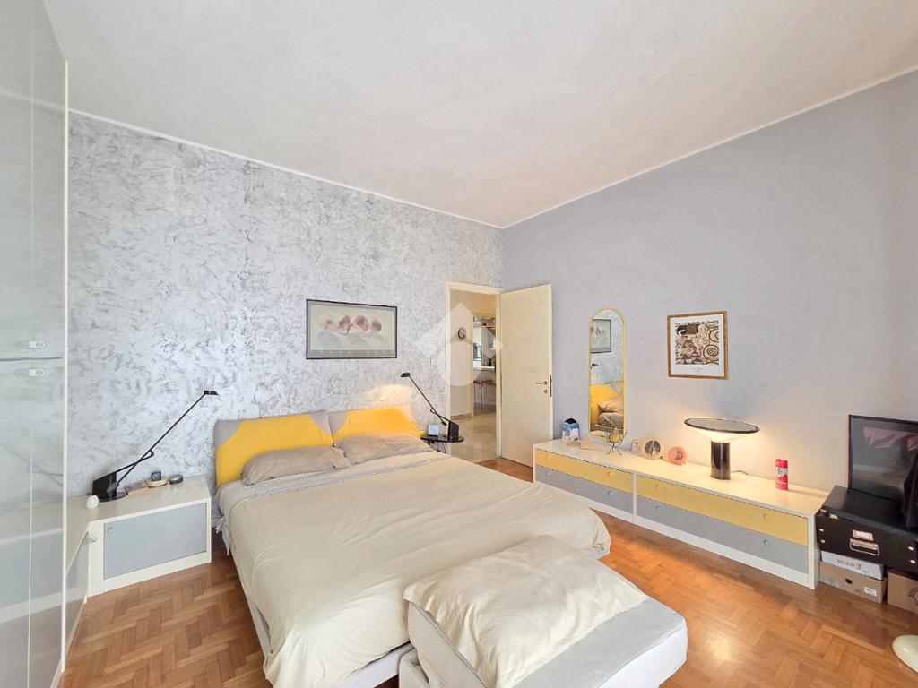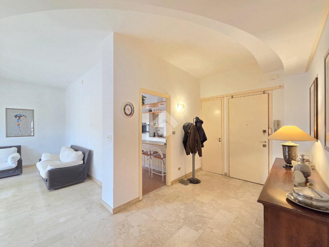 Inserito in un piccolo contesto abitativo edificato negli anni '70, privo di amministratore e di spese condominiali, l'appartamento è posizionato al primo piano di due e possiede una tripla esposizione. Caratterizzato dalla splendida controsoffittatura curva che ospita l'illuminazione a faretti, il soggiorno si presenta ampio e luminoso. La sua pavimentazione in marmo bianco percorre anche il grande disimpegno, donando una piacevole omogeneità. L'accesso al primo terrazzino, arricchito dalle tende da sole a rullo, è possibile dal salone e dalla cucina. Percorrendo il balcone angolare e, raggiunta la cucina, è subito percepibile la sua comoda abitabilità. Valorizzata dalla penisola, quest'ultima è particolarmente lineare e facilmente arredabile. Volendo è possibile abbattere il muro che divide soggiorno e cucina. L'ingresso dalla porta blindata avviene sull'ampio disimpegno che ospita il ripostiglio, dal quale è possibile raggiungere ogni locale dell'appartamento. Le camere da letto sono due, entrambe matrimoniali ed entrambe pavimentate in legno posato a lisca di pesce. Il secondo balcone, questa volta lineare, dà accesso ad entrambe le camere. L'ampio bagno finestrato, affaccia sul terzo lato del fabbricato e, le sue dimensioni hanno permesso la posa del doppio lavello. Attentamente disimpegnati, i sanitari sono di fronte alla grande vasca angolare, che funge anche da doccia grazie al suo box in cristallo. La cantina di proprietà è ubicata al piano interrato, mentre il garage è al piano terreno all'interno del cortile. Indubbiamente gradevole è il giardino in uso esclusivo, ideale per le giornate soleggiate, posizionato verso il lato più riservato del fabbricato. Le parti comuni dell'edificio sono ordinate e, non sono previsti lavori straordinari. Il mercato, il centro commerciale così come le scuole ed i mezzi pubblici sono raggiungibili a piedi.