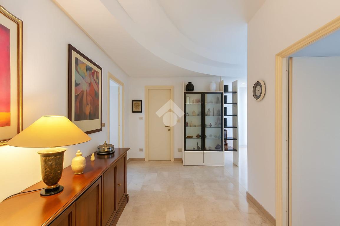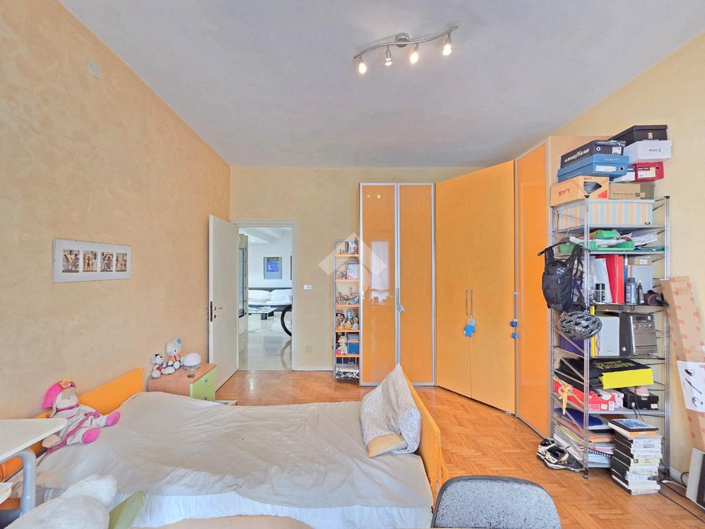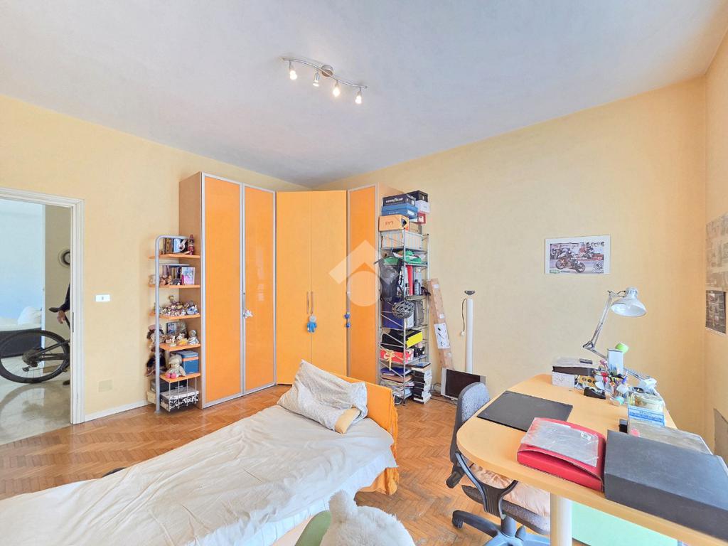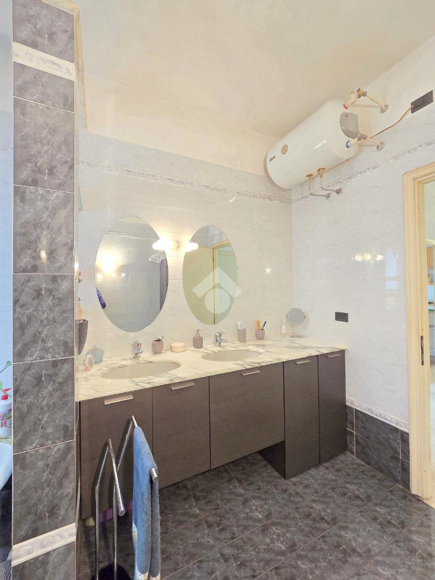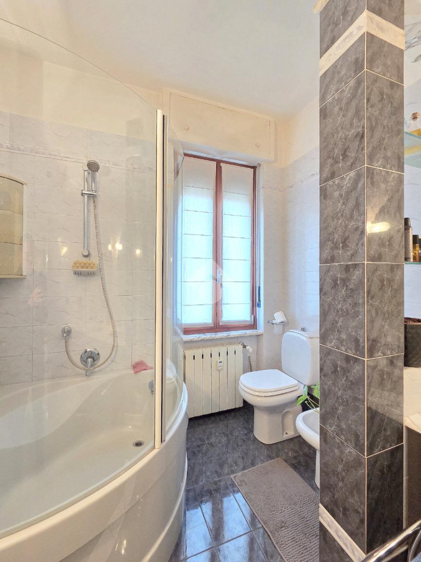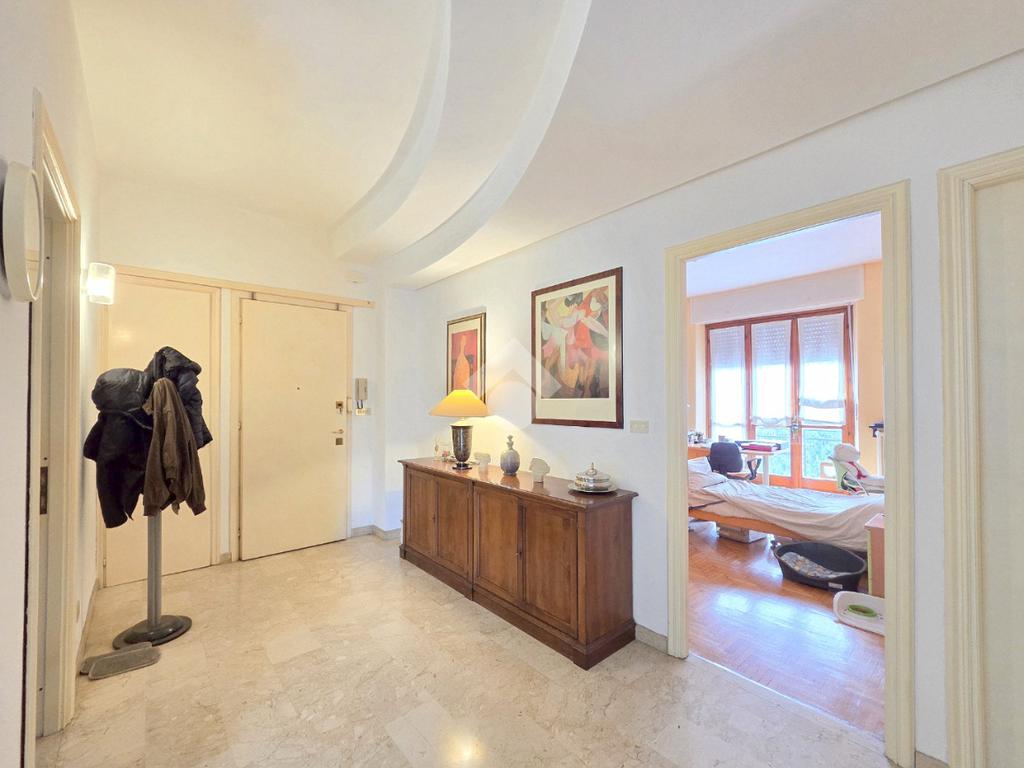 Inserito in un piccolo contesto abitativo edificato negli anni '70, privo di amministratore e di spese condominiali, l'appartamento è posizionato al primo piano di due e possiede una tripla esposizione. Caratterizzato dalla splendida controsoffittatura curva che ospita l'illuminazione a faretti, il soggiorno si presenta ampio e luminoso. La sua pavimentazione in marmo bianco percorre anche il grande disimpegno, donando una piacevole omogeneità. L'accesso al primo terrazzino, arricchito dalle tende da sole a rullo, è possibile dal salone e dalla cucina. Percorrendo il balcone angolare e, raggiunta la cucina, è subito percepibile la sua comoda abitabilità. Valorizzata dalla penisola, quest'ultima è particolarmente lineare e facilmente arredabile. Volendo è possibile abbattere il muro che divide soggiorno e cucina. L'ingresso dalla porta blindata avviene sull'ampio disimpegno che ospita il ripostiglio, dal quale è possibile raggiungere ogni locale dell'appartamento. Le camere da letto sono due, entrambe matrimoniali ed entrambe pavimentate in legno posato a lisca di pesce. Il secondo balcone, questa volta lineare, dà accesso ad entrambe le camere. L'ampio bagno finestrato, affaccia sul terzo lato del fabbricato e, le sue dimensioni hanno permesso la posa del doppio lavello. Attentamente disimpegnati, i sanitari sono di fronte alla grande vasca angolare, che funge anche da doccia grazie al suo box in cristallo. La cantina di proprietà è ubicata al piano interrato, mentre il garage è al piano terreno all'interno del cortile. Indubbiamente gradevole è il giardino in uso esclusivo, ideale per le giornate soleggiate, posizionato verso il lato più riservato del fabbricato. Le parti comuni dell'edificio sono ordinate e, non sono previsti lavori straordinari. Il mercato, il centro commerciale così come le scuole ed i mezzi pubblici sono raggiungibili a piedi.