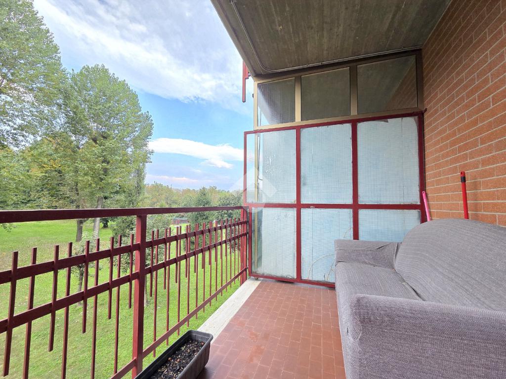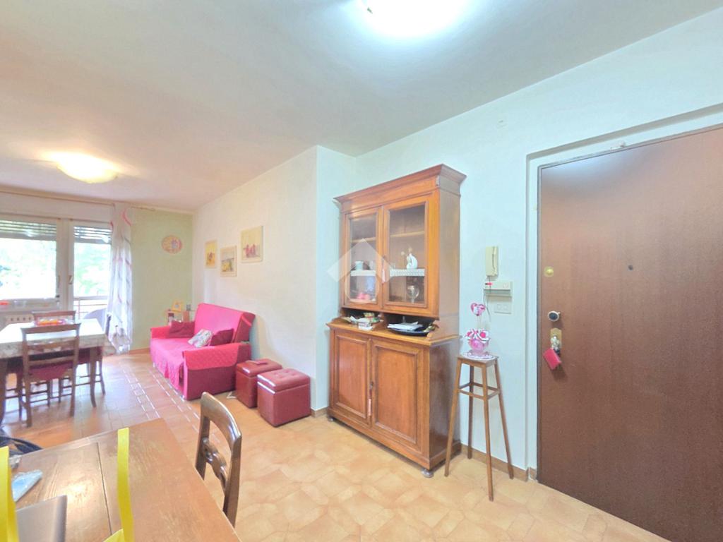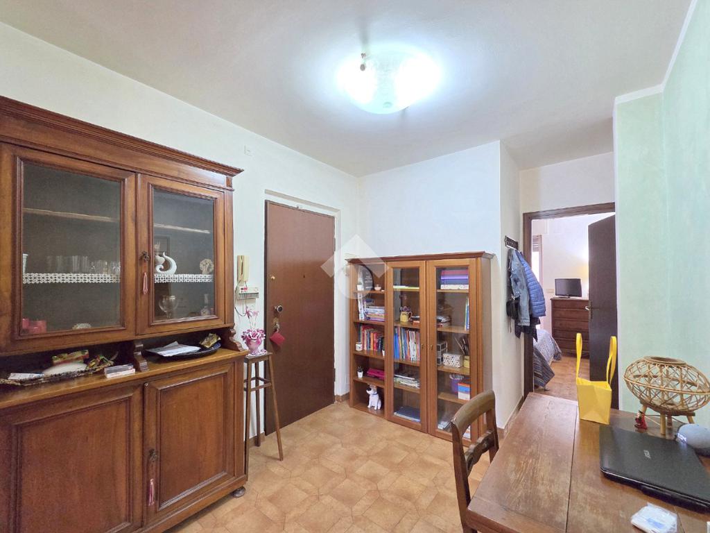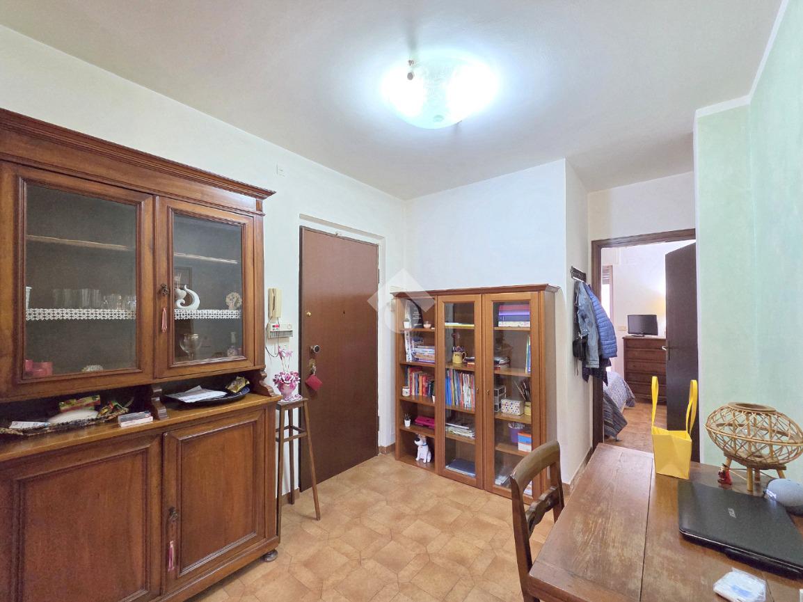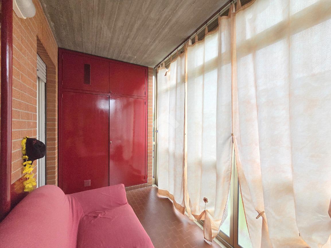Il soggiorno living accessibile dalla porta blindata, consente di raggiungere ed utilizzare il primo terrazzo con la vista del parco. Inserito nella splendida cornice del complesso residenziale di 'Piazza 8 Marzo', l'immobile è inserito nel fabbricato più riservato dello stesso complesso. L'assenza di barriere architettoniche e la presenza del parco con pista di pattinaggio, campi da bocce ed area attrezzata per i bambini, rendono l'immobile particolarmente interessante. Fin dalla sua progettazione, l'immobile ha visto una modifica sostanziale, che ha invertito l'esposizione della zona giorno con quella della zona notte. La parete lineare attrezzata a cucina, accessibile dal living, è nascosta dietro al muro che la disimpegna dall'ingresso. La camera da letto, che ha preso il posto della cucina, è stata arricchita dalla cabina armadi con porte scorrevoli. Il bagno finestrato ospita la vasca e la lavatrice. Dotato della doppia esposizione, l'appartamento è ubicato al secondo piano e servito dall'ascensore. La sua pavimentazione è omogenea al di fuori del servizio igienico. All'interno del complesso reresidenziale sono presenti i posti auto e, al piano semi interrato è presente la cantina di proprietà . Il secondo terrazzo, sulla facciata interna del condominio, ospita la caldaia che gestisce il riscaldamento autonomo e l'acqua calda sanitaria. La stazione ferroviaria, i mezzi pubblici e ogni altro servizio di prima necessità sono raggiungibili senza l'utilizzo dell'auto.