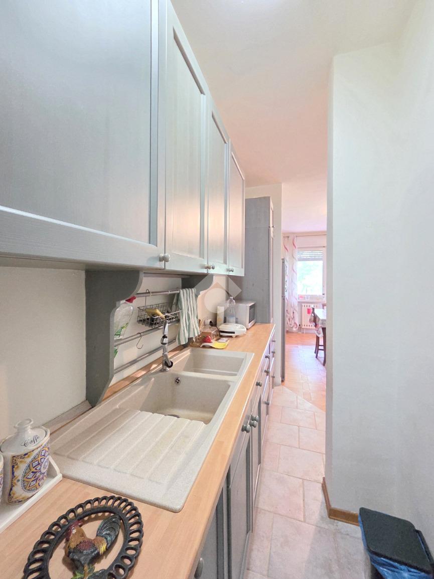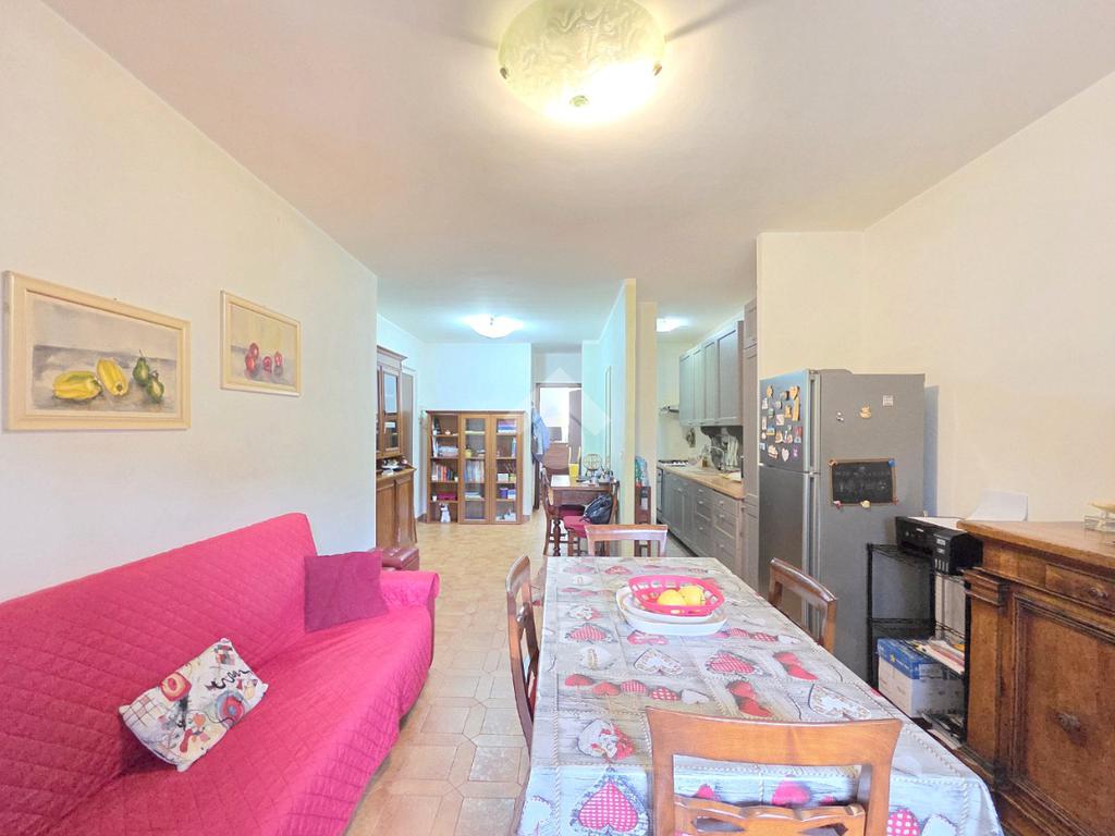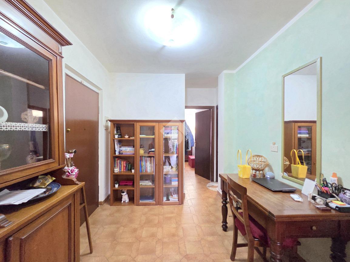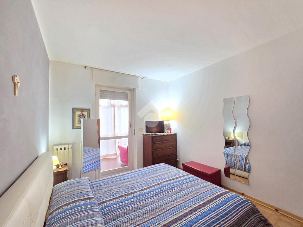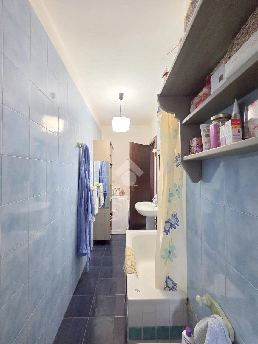 Il soggiorno living accessibile dalla porta blindata, consente di raggiungere ed utilizzare il primo terrazzo con la vista del parco. Inserito nella splendida cornice del complesso residenziale di 'Piazza 8 Marzo', l'immobile è inserito nel fabbricato più riservato dello stesso complesso. L'assenza di barriere architettoniche e la presenza del parco con pista di pattinaggio, campi da bocce ed area attrezzata per i bambini, rendono l'immobile particolarmente interessante. Fin dalla sua progettazione, l'immobile ha visto una modifica sostanziale, che ha invertito l'esposizione della zona giorno con quella della zona notte. La parete lineare attrezzata a cucina, accessibile dal living, è nascosta dietro al muro che la disimpegna dall'ingresso. La camera da letto, che ha preso il posto della cucina, è stata arricchita dalla cabina armadi con porte scorrevoli. Il bagno finestrato ospita la vasca e la lavatrice. Dotato della doppia esposizione, l'appartamento è ubicato al secondo piano e servito dall'ascensore. La sua pavimentazione è omogenea al di fuori del servizio igienico. All'interno del complesso reresidenziale sono presenti i posti auto e, al piano semi interrato è presente la cantina di proprietà . Il secondo terrazzo, sulla facciata interna del condominio, ospita la caldaia che gestisce il riscaldamento autonomo e l'acqua calda sanitaria. La stazione ferroviaria, i mezzi pubblici e ogni altro servizio di prima necessità sono raggiungibili senza l'utilizzo dell'auto.