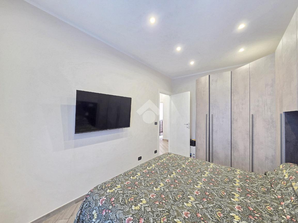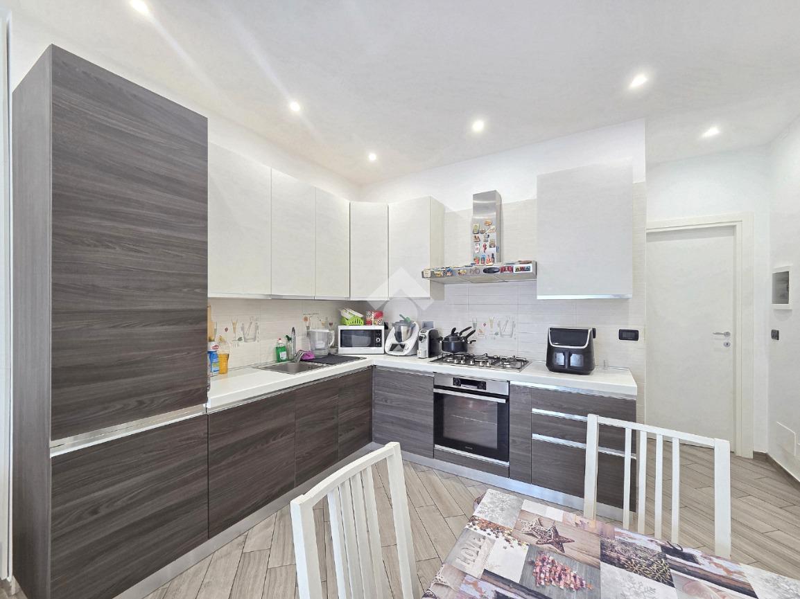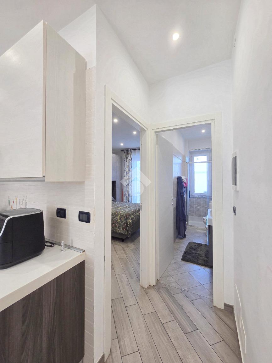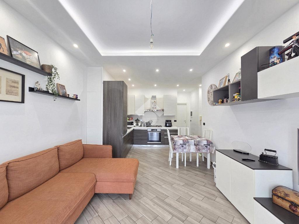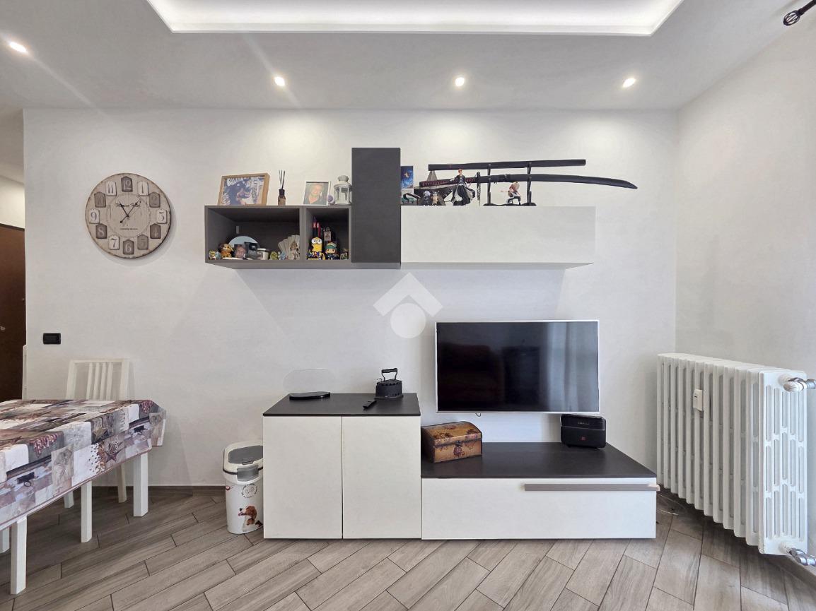 La completa e attenta ristrutturazione ultimata nel 2016, ha visto il rifacimento di tutti gli impianti e il completo stravolgimento degli spazi interni. La zona notte ha preso il posto della zona giorno e viceversa. L'ampio soggiorno living con la cucina angolare a vista, è valorizzato dalla contro soffittatura che ospita, faretti e strisce led. Il primo balcone, raggiungibile dalla zona giorno, affaccia sul lato principale del piccolo condominio. La camera matrimoniale è molto spaziosa, tanto da ospitare l'armadio con la cabina. Anch'essa è valorizzata dalla contro soffittatura con l'illuminazione incassata. Il secondo balcone accessibile da quest'ultima, è stato arricchito dalle tende invernali a rullo e dagli impianti per lavatrice ed asciugatrice. La ristrutturazione ha cambiato anche la struttura del bagno finestrato che, al momento vede i sanitari tutti sullo stesso lato e, al fondo la doccia in cristallo. La seconda camera da letto, adiacente al living, affaccia anch'essa sul lato principale del fabbricato. Tutta la pavimentazione dell'appartamento è omogenea al di fuori del servizio igienico ed è stata posata a 45°. I lavori hanno visto anche la sostituzione di tutti gli infissi esterni, compreso le tapparelle e la loro motorizzazione. E' stato predisposto anche l'impianto di antifurto. Posizionato al secondo ed ultimo piano, l'appartamento possiede una doppia esposizione ed è stato completamente coibentato rispetto al piano sottotetto. La cantina è al piano interrato. Vista la centralissima posizione in cui è ubicato, è particolarmente utile il box in autorimessa di proprietà sullo stesso piano della cantina. Comodo a qualsiasi servizio di prima necessità, sono raggiungibili a piedi anche mezzi pubblici e stazione ferroviaria, oltre a scuole e supermercati.