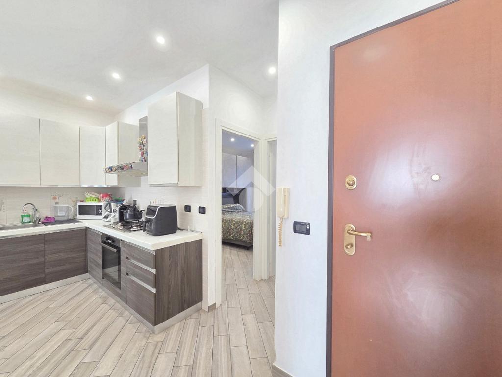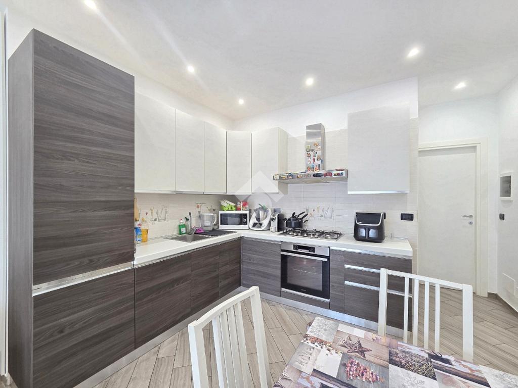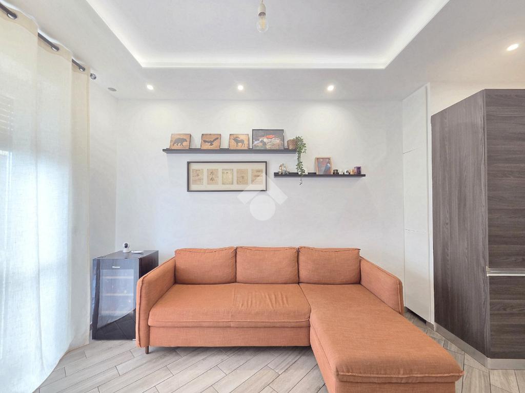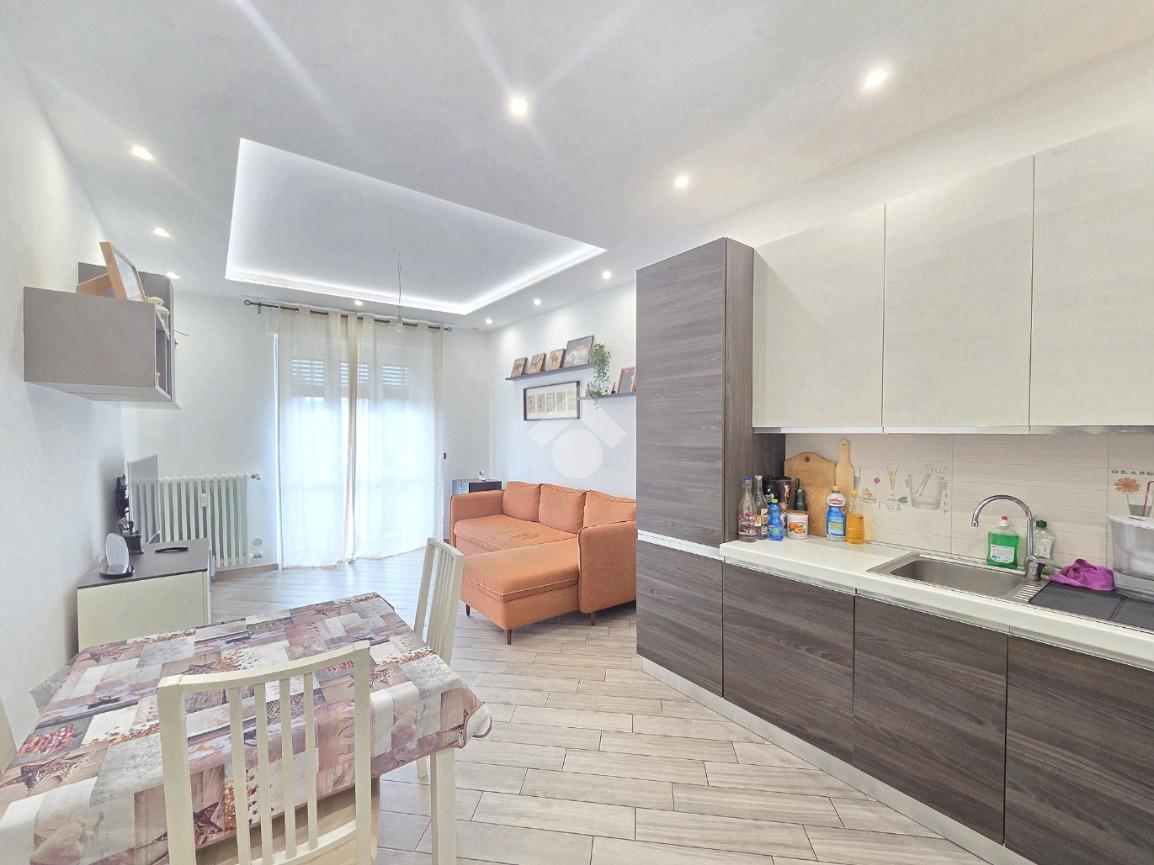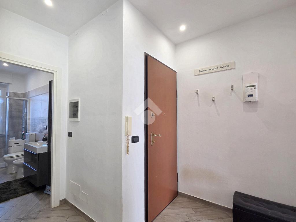 La completa e attenta ristrutturazione ultimata nel 2016, ha visto il rifacimento di tutti gli impianti e il completo stravolgimento degli spazi interni. La zona notte ha preso il posto della zona giorno e viceversa. L'ampio soggiorno living con la cucina angolare a vista, è valorizzato dalla contro soffittatura che ospita, faretti e strisce led. Il primo balcone, raggiungibile dalla zona giorno, affaccia sul lato principale del piccolo condominio. La camera matrimoniale è molto spaziosa, tanto da ospitare l'armadio con la cabina. Anch'essa è valorizzata dalla contro soffittatura con l'illuminazione incassata. Il secondo balcone accessibile da quest'ultima, è stato arricchito dalle tende invernali a rullo e dagli impianti per lavatrice ed asciugatrice. La ristrutturazione ha cambiato anche la struttura del bagno finestrato che, al momento vede i sanitari tutti sullo stesso lato e, al fondo la doccia in cristallo. La seconda camera da letto, adiacente al living, affaccia anch'essa sul lato principale del fabbricato. Tutta la pavimentazione dell'appartamento è omogenea al di fuori del servizio igienico ed è stata posata a 45°. I lavori hanno visto anche la sostituzione di tutti gli infissi esterni, compreso le tapparelle e la loro motorizzazione. E' stato predisposto anche l'impianto di antifurto. Posizionato al secondo ed ultimo piano, l'appartamento possiede una doppia esposizione ed è stato completamente coibentato rispetto al piano sottotetto. La cantina è al piano interrato. Vista la centralissima posizione in cui è ubicato, è particolarmente utile il box in autorimessa di proprietà sullo stesso piano della cantina. Comodo a qualsiasi servizio di prima necessità, sono raggiungibili a piedi anche mezzi pubblici e stazione ferroviaria, oltre a scuole e supermercati.
