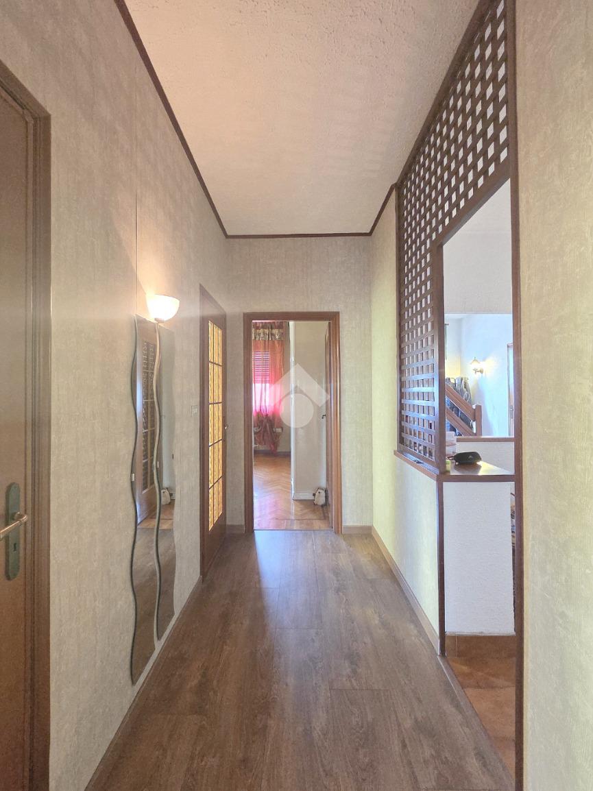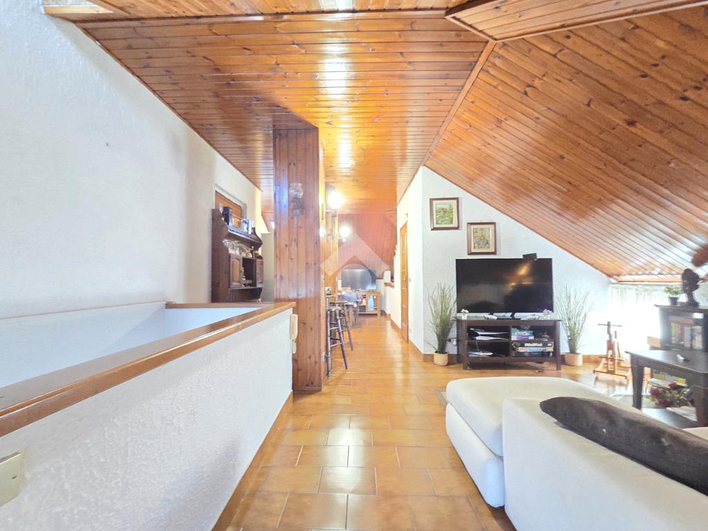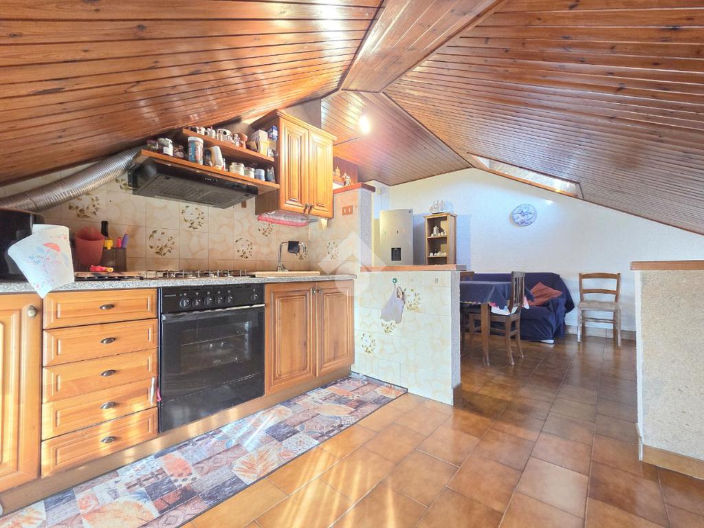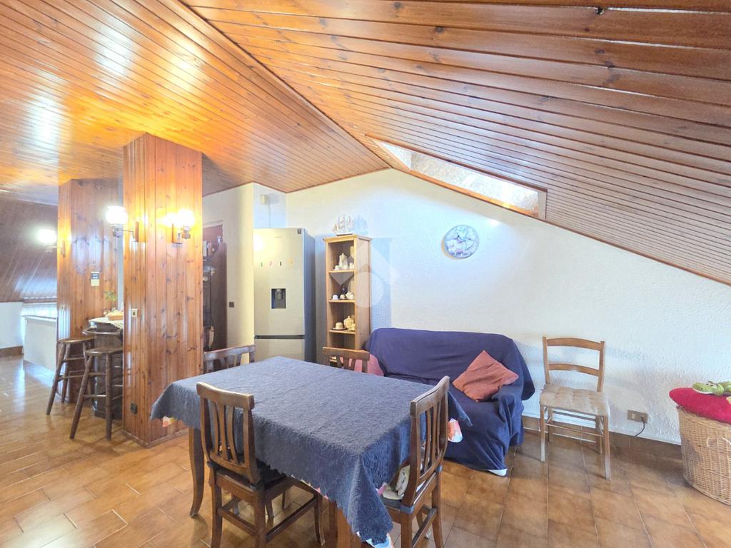 Il piano mansardato possiede il suo ingresso indipendente ed è un unico grande open opace abitabile di circa 75 metri. Al suo interno trovano spazio la cucina ed il primo dei 2 bagni entrambi finestrati. Omogeneo nella sua pavimentazione, il piano superiore possiede il tetto in cemento armato ed è rifinito con la perlinatura su tutta la sua superficie. Particolarmente luminoso grazie alle finestre presenti su ogni lato e, ai 2 abbaini, il piano superiore è collegato al piano sottostante mediante la scala in legno. Il piano inferiore è posizionato al 7º ed ultimo piano dal quale si gode di un panorama semplicemente MOZZAFIATO !!. Unico, in tutto il comune di Apignano, offre la possibilità di distinguere singolarmente il 7º e l'8º piano. L'ingresso del 7º piano è garantito dalla porta blindata sul living che potrebbe ospitare comodamente il soggiorno con la cucina. Da quest'ultimo è possibile accedere al primo dei due balconi. Il ripostiglio, sempre comodo nella sua funzionalità, è presente nello stesso locale. Attraverso il corridoio è possibile raggiungere le 2 grandi camere da letto che sono ubicate rispettivamente una di fronte all'altra. La prima è pavimentata in legno posato a lisca di pesce. La seconda, anch'essa matrimoniale, possiede l'altro balcone. Anche quest'ultimo regala un panorama introvabile e straordinario. Sullo stesso corridoio è presente il secondo bagno finestrato, all'interno del quale è stata posata la doccia. Adiacente al servizio igienico è presente anche la lavanderia, finestrata a sua volta. Inserito in un condominio recentemente ristrutturato nella facciata su strada, l'appartamento possiede una tripla esposizione come il piano malsadato. Nel caso in cui ci fosse la volontà di utilizzare il piano inferiore come zona giorno e, quello superiore come zona note, esistono già gli impianti che lo permetterebbero. Ovviamente servito dall'ascensore, l'immobile dispone della cantina ubicata al piano interrato. Comodo a qualsiasi servizio, il fabbricato è attiguo a scuole e mezzi pubblici.