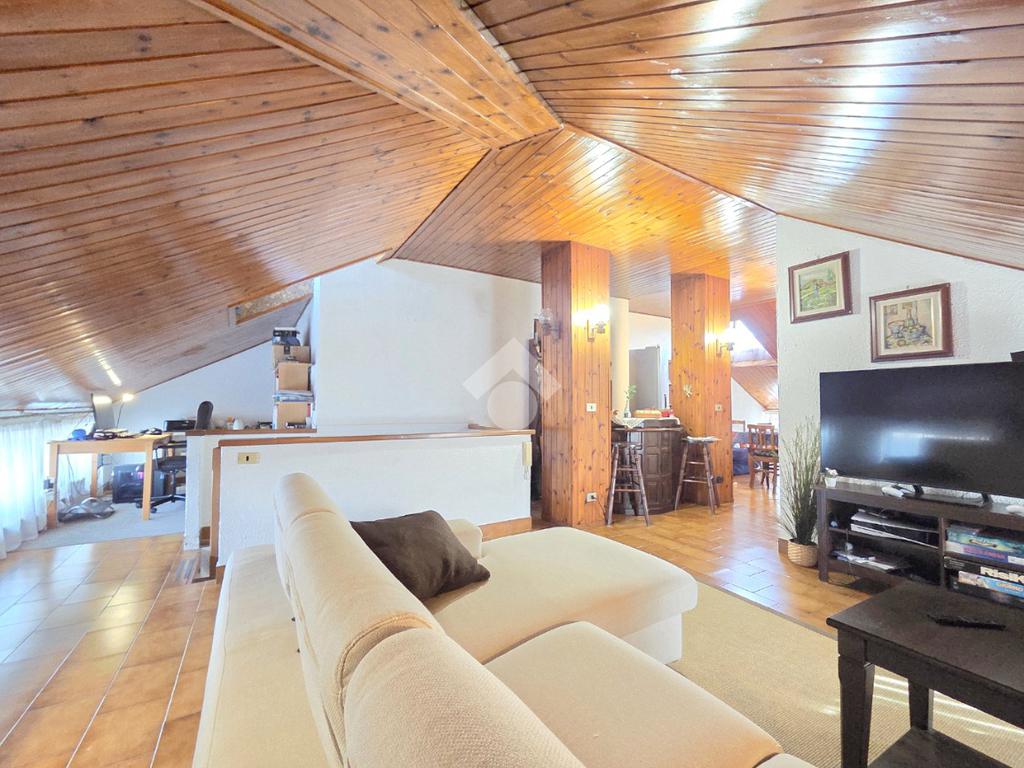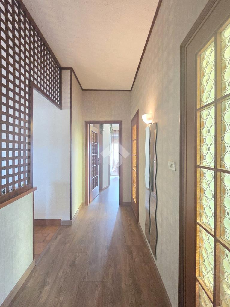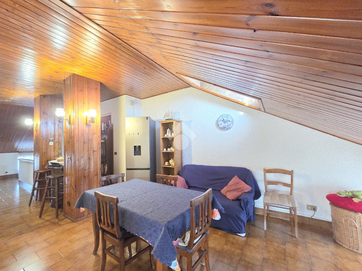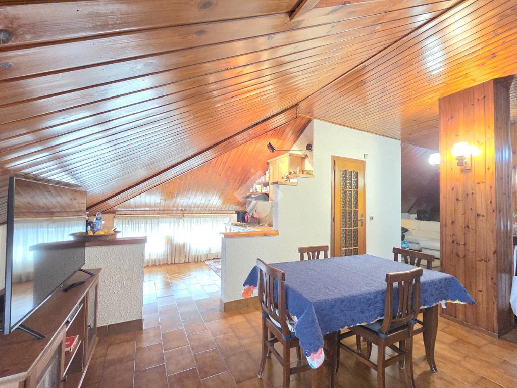 Il piano mansardato possiede il suo ingresso indipendente ed è un unico grande open opace abitabile di circa 75 metri. Al suo interno trovano spazio la cucina ed il primo dei 2 bagni entrambi finestrati. Omogeneo nella sua pavimentazione, il piano superiore possiede il tetto in cemento armato ed è rifinito con la perlinatura su tutta la sua superficie. Particolarmente luminoso grazie alle finestre presenti su ogni lato e, ai 2 abbaini, il piano superiore è collegato al piano sottostante mediante la scala in legno. Il piano inferiore è posizionato al 7º ed ultimo piano dal quale si gode di un panorama semplicemente MOZZAFIATO !!. Unico, in tutto il comune di Apignano, offre la possibilità di distinguere singolarmente il 7º e l'8º piano. L'ingresso del 7º piano è garantito dalla porta blindata sul living che potrebbe ospitare comodamente il soggiorno con la cucina. Da quest'ultimo è possibile accedere al primo dei due balconi. Il ripostiglio, sempre comodo nella sua funzionalità, è presente nello stesso locale. Attraverso il corridoio è possibile raggiungere le 2 grandi camere da letto che sono ubicate rispettivamente una di fronte all'altra. La prima è pavimentata in legno posato a lisca di pesce. La seconda, anch'essa matrimoniale, possiede l'altro balcone. Anche quest'ultimo regala un panorama introvabile e straordinario. Sullo stesso corridoio è presente il secondo bagno finestrato, all'interno del quale è stata posata la doccia. Adiacente al servizio igienico è presente anche la lavanderia, finestrata a sua volta. Inserito in un condominio recentemente ristrutturato nella facciata su strada, l'appartamento possiede una tripla esposizione come il piano malsadato. Nel caso in cui ci fosse la volontà di utilizzare il piano inferiore come zona giorno e, quello superiore come zona note, esistono già gli impianti che lo permetterebbero. Ovviamente servito dall'ascensore, l'immobile dispone della cantina ubicata al piano interrato. Comodo a qualsiasi servizio, il fabbricato è attiguo a scuole e mezzi pubblici.