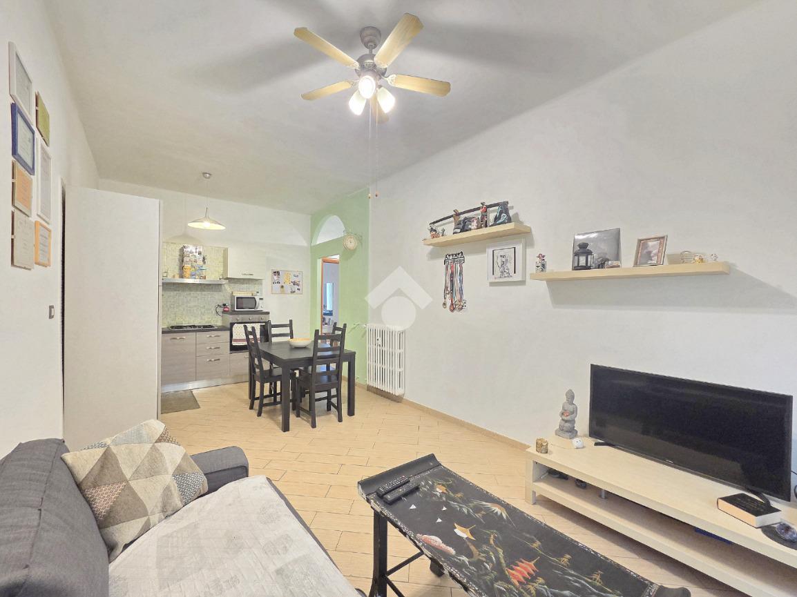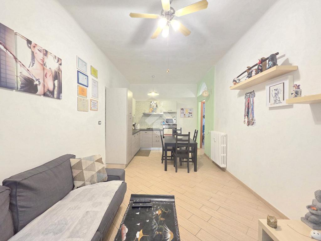 Il soggiorno living ospita comodamente la cucina angolare a vista, completa di tutti gli elettrodomestici. Particolarmente sfruttabile in tutti i suoi spazi, il living raggiunge circa 35 metri di dimensione. Una parte è adibita a zona pranzo, l'altra ospita divano e TV. Da quest'ultimo è possibile utilizzare il primo dei due balconi, che affaccia sul lato principale del condominio. L'ingresso dalla porta blindata avviene sul disimpegno, dal quale è possibile raggiungere ogni locale dell'appartamento. Il primo è il servizio igienico, finestrato e all'interno del quale è stata posata la vasca. Accanto ai sanitari, trova spazio anche la lavatrice. Adiacente ad esso, è presente l'imponente camera matrimoniale, grande da poter ospitare comodamente una cabina armadi al suo interno. Quest'ultima accede al lungo balcone privato, arricchito dalle tende invernali a rullo. Sullo stesso balcone è presente anche il comodo e funzionale ripostiglio. L'appartamento è già stato oggetto di una ristrutturazione che ha visto la sostituzione dei pavimenti, delle porte interne e anche di tutti gli infissi esterni. La doppia esposizione garantisce una piacevole luminosità. Ubicato al secondo piano di tre, all'interno di un condominio posizionato nel pieno centro di Alpignano, l'immobile possiede la cantina al piano interrato. Comodo a qualsiasi servizio di prima necessità; mezzi pubblici, stazione ferroviaria e scuole sono raggiungibili a piedi. Viste le contenute spese di gestione, l'appartamento si presenta ottimale anche come investimento, garantendo una rendita dell'8%.