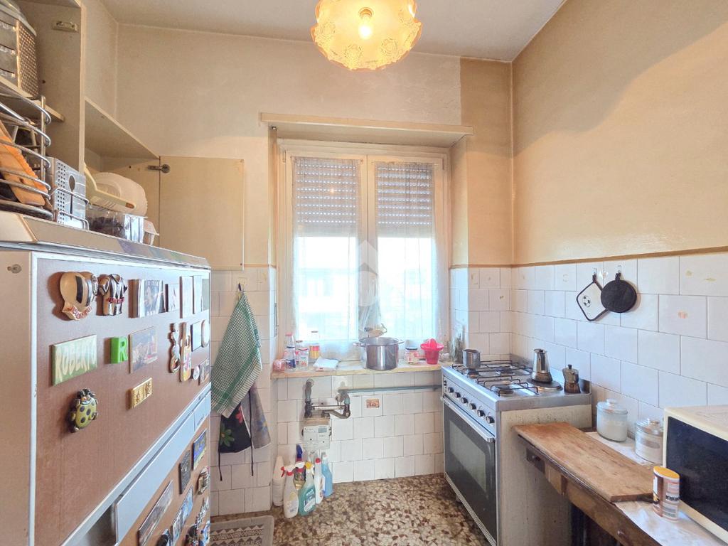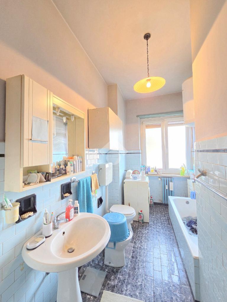 La cucina è particolarmente ampia e collegata al balcone che affaccia sul lato interno del piccolo condominio. Annessa a quest'ultima è il cucinino finestrato, volendo unificabile alla cucina abbattendo le due spallette che lo dividono. L'ingresso avviene sul corridoio angolare che consente l'accesso ad ogni locale dell'appartamento. Il primo che si incontra percorrendo il corridoio è il soggiorno, arricchito dal balcone angolare che affaccia principalmente sulla facciata di via Toti. Adiacente al soggiorno è presente l'ampia camera matrimoniale, luminosa e confortevole nella sua vivibilità, grazie alle lunghe pareti lineari che permettono di ospitare ogni tipologia di mobilio. Di fronte a quest'ultima è presente la cameretta/studio, valorizzata dall'uscita sul balcone che collega la cucina abitabile. A completare la proprietà del piano è il bagno finestrato, all'interno del quale trovano spazio sanitari, lavatrice e vasca. Gradevolmente luminoso, grazie alla tripla esposizione, l'appartamento è inserito in un contesto anni '70 e si presenta in stato originale. Posizionato nel pieno centro di Alpignano, comodo ad ogni servizio di prima necessità, l'immobile possiede la cantina al piano interrato. Ideale per chi desidera un immobile da personalizzare, è possibile sfruttare le detrazioni del 50 % per la ristrutturazione della propria abitazione principale. Nello stabile è possibile acquistare un'altro appartamento, più piccolo, posizionalto al piano rialzato.
