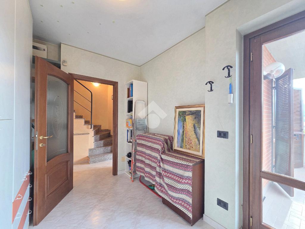 L’ingresso principale si apre direttamente su un salone di generose dimensioni, un ambiente luminoso e confortevole, impreziosito da ampie superfici finestrate che garantiscono un’illuminazione naturale costante durante tutto l’arco della giornata. Da questo è garantito l'accesso alla grande area esterna terrazzata.