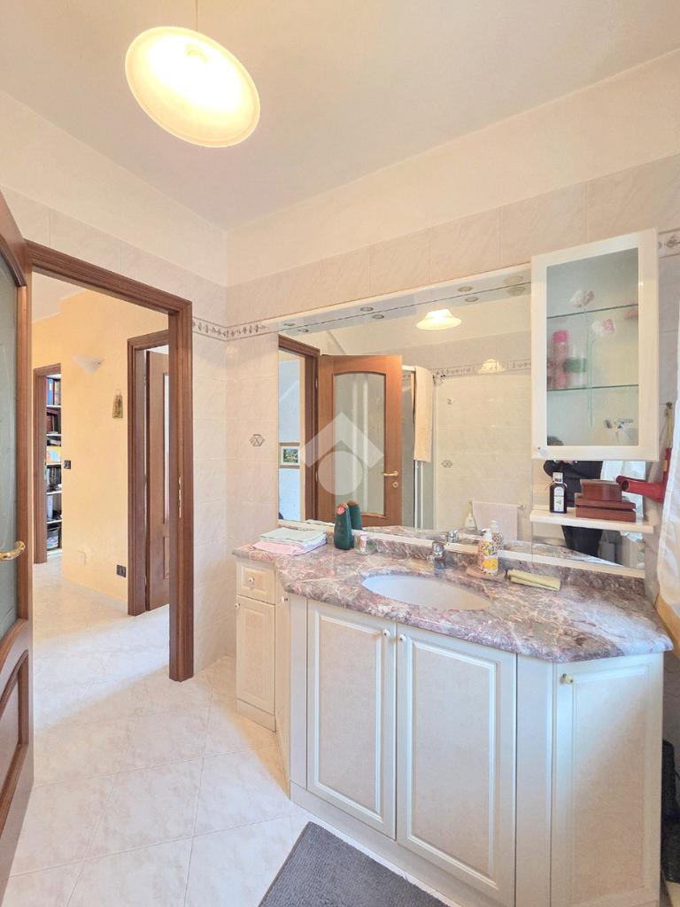 Sullo stesso livello è presente il primo bagno finestrato, comodo e ben rifinito, che ospita al suo interno la vasca da bagno.