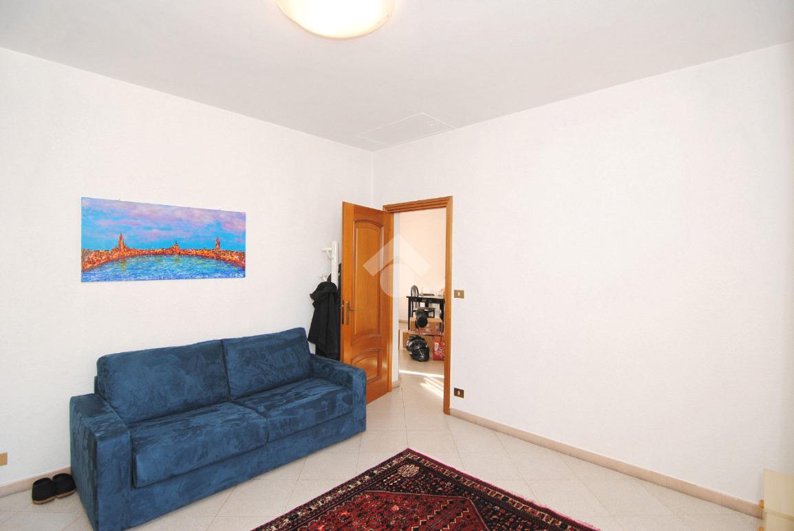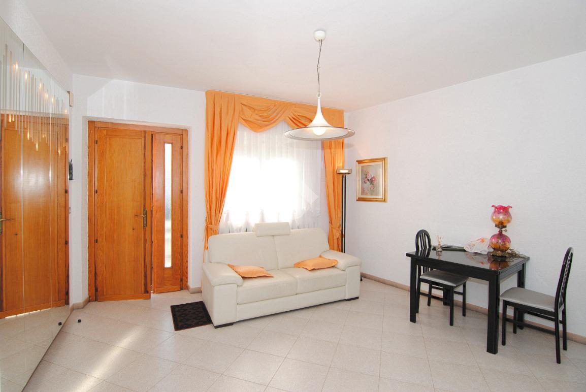 Accedendo dalla porta d'ingresso, ci accoglie un luminosissimo salone molto generoso anche nelle dimensioni che ci accompagna a tutti gli altri locali dell'immobile. Adiacente al salone troviamo la cucina abitabile, dove sono stati posizionati gli impianti in entrambi le pareti per permettere di arredare tutto l'ambiente, al suo interno troviamo anche l'accesso al balcone. Le camere da letto sono due ed entrambe di ampie metrature, tanto da poter ospitare al loro interno l'arredamento di una camera matrimoniale. In una delle due camere è presente la botola che permette l'accesso al sottotetto non abitabile, utilizzato attualmente come locale di sgombero, ma esiste la possibilità di poterlo rendere riscaldamento è autonomo. La proprietà viene completata dal box auto singolo, due posti auto e il giardino di proprietà, dove è già stata creata un'area relax. L'immobile, all'interno di una bifamiliare che offre molta indipendenza e tranquillità, è ubicato nel centro del paese comodo a tutti i servizi che si possono raggiungere comodamente a piedi.