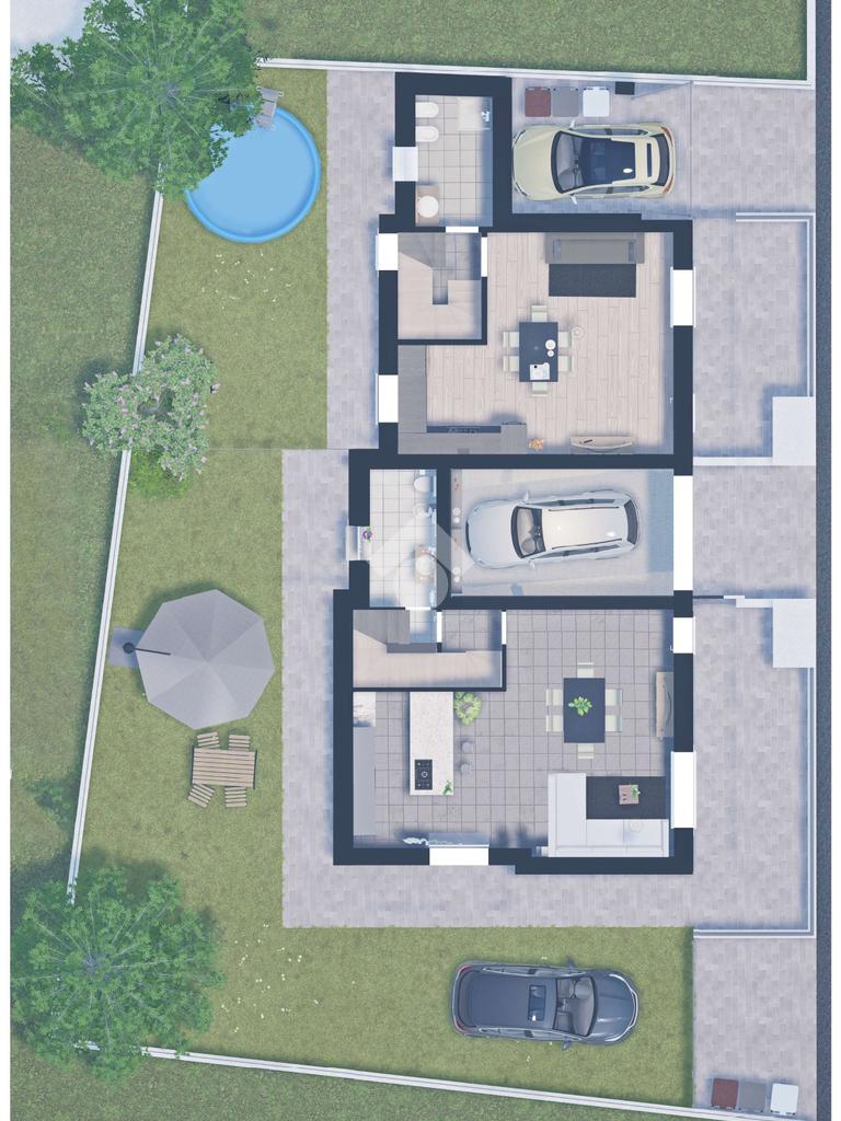 La moderna struttura che ospiterà le due unità abitative è stata progettata per massimizzare il risparmio energetico e, la gestione degli spazi è particolarmente funzionale. Priva di spese condominiali e amministratore, la casa verrà sviluppata su due livelli abitativi. Il riscaldamento autonomo è a pavimento, gestito da pannelli e pompe di calore. Le tapparelle saranno motorizzate, così come l'apertura del cancello carraio. Gli infissi in PVC e l'attenta coibentazione favoriranno un'ottima vivibilità dell'immobile. L'immobile verrà consegnato finito e rifinito in ogni parte con la scelta dei materiali di capitolato di alta qualità. La gradevole luminosità verrà garantita anche dalla tripla esposizione. L'ingresso al piano terreno avverrà attraverso la porta blindata, direttamente sull'ampio soggiorno con la cucina a vista. La parte terrazzata ed il giardino privato, saranno raggiungibili sia dalla cucina che dal soggiorno. Attraverso il disimpegno che ospita la scala che consente di raggiungere il piano superiore, è possibile accedere al primo grande bagno finestrato. L'ampio disimpegno della zona notte, permetterà di utilizzare le tre camere da letto. Sullo stesso piano sono presenti tre balconi, due dei quali sono utilizzabili attraverso le camere da letto, l'ultimo sarà accessibile dal bagno finestrato. Quest'ultimo avrà accesso dall'ampio disimpegno. Se richiesto per tempo, sarà possibile valutare eventuali modifiche interne. La posizione in cui sorgerà la bifamiliare, è particolarmente gradevole. Pur essendo adiacente ad altre ville, non mancheranno privacy e tranquillità. La consegna è prevista per l'autunno del 2026.