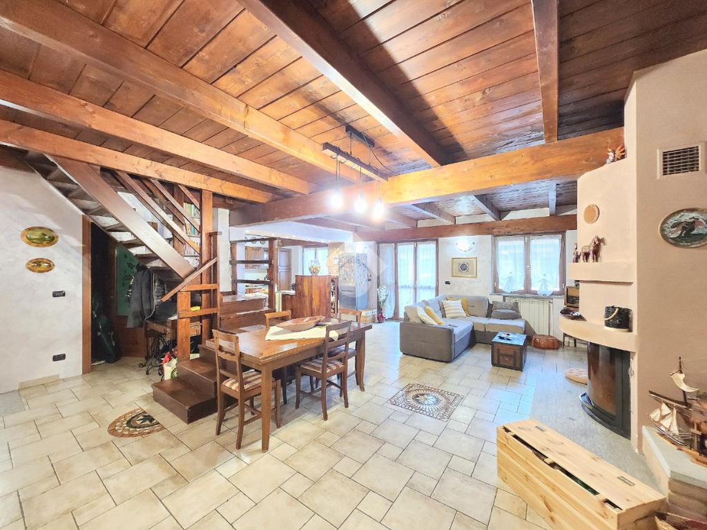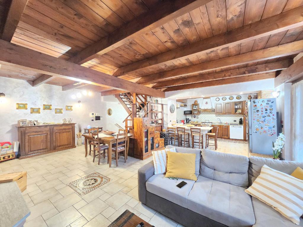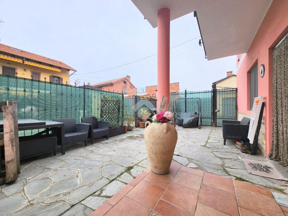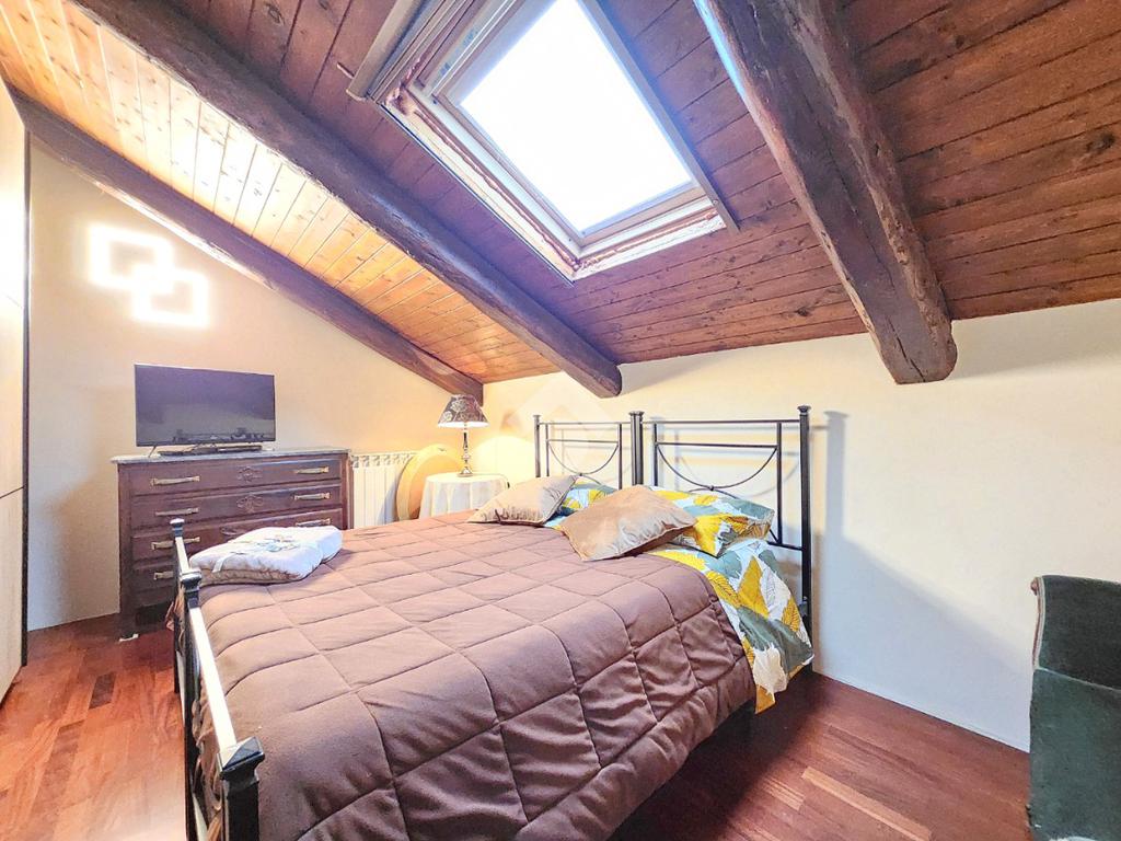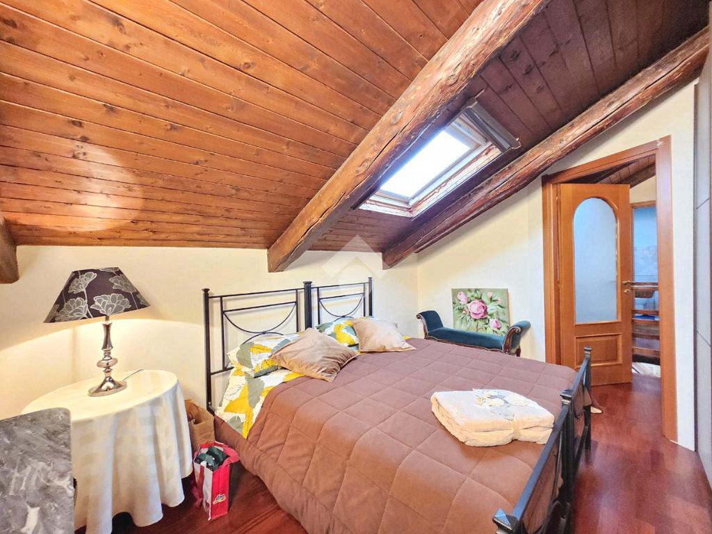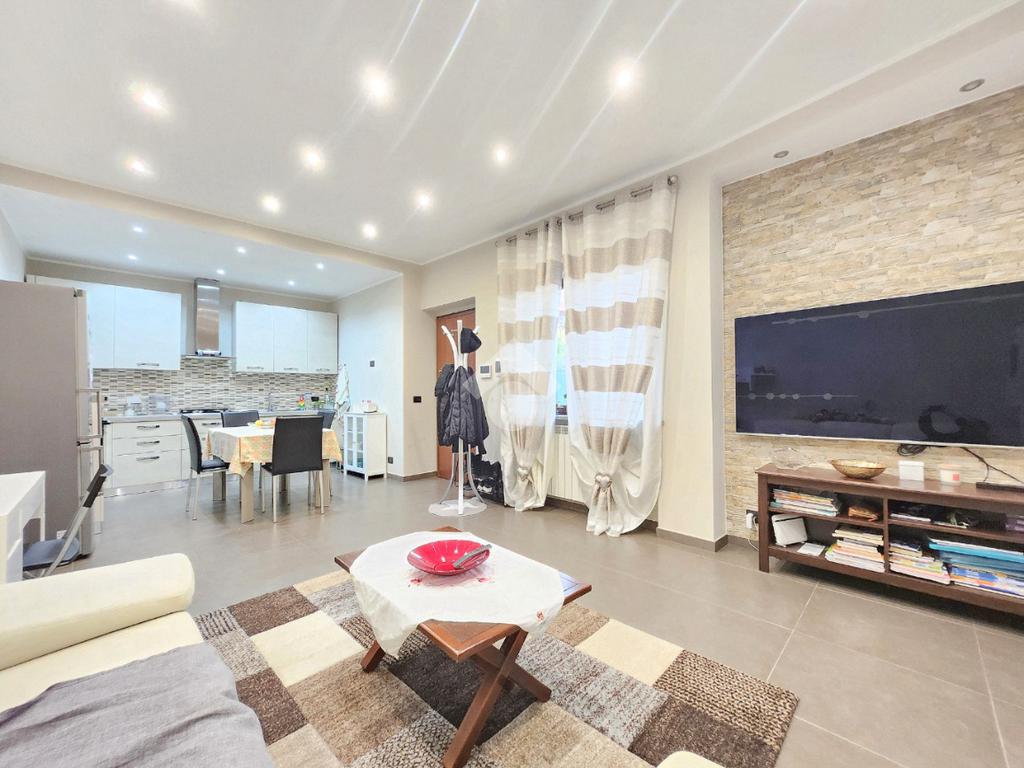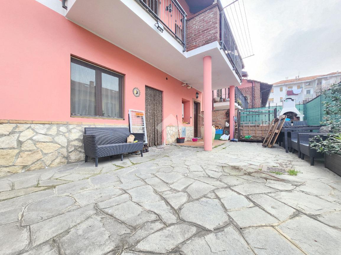La zona giorno dell'appartamento più grande si presenta ampia e particolarmente luminosa. Il camino a legna è posato esattamente a metà dei circa 70 metri che occupano il salone che ospita la cucina abitabile a vista. Indubbiamente valorizzata dalle travi a vista che rifiniscono il piano, la zona giorno possiede l'accesso al terrazzino. La cucina in muratura è angolare e, la penisola ospita comodamente 5 posti a sedere. Adiacente ad essa è presente il primo dei 3 bagni che troviamo all'interno del fabbricato. Arricchito dalla doccia multifunzionale, quest'ultimo possiede la ventilazione forzata. Al centro del salone è stata posata la scala in legno a vista che consente di raggiungere il piano notte. Accolti dall'ampio disimpegno, il piano notte ospita 3 camere da letto e possiede una pavimentazione legnosa in ogni locale al di fuori del bagno. Oltre alle 3 camere da letto, sul piano è presente un grande ripostiglio, volendo utilizzabile come studio. Il bagno della zona notte è finestrato ed ospita la vasca idromassaggio, esattamente sotto il velux. L'appartamento più piccolo è al piano terreno e, non possiede nessuna barriera architettonica. L'accesso dalla porta blindata avviene direttamente sul grande soggiorno living con la cucina lineare a vista. Tutta la sua illuminazione è garantita dai faretti incassati nella controffittatura. Attraverso la comoda porta scrigno, è possibile raggiungere il disimpegno che funge anche da antibagno. Una seconda porta scrigno consente di accedere alla capiente camera da letto matrimoniale. Il terzo bagno, quello del piano terreno, è valorizzato dalla doccia con box in cristallo. Il cortile privato, antistante al fabbricato, possiede un accesso pedonale ed uno carraio che consente l'accesso alle auto. Tutta la struttura è stata oggetto di una completa ristrutturazione, dal piano terra al tetto, impianti compresi. Posizionato nella zona più centrale di alpignano, consente di raggiungere ogni servizio a piedi, mezzi pubblici compresi.