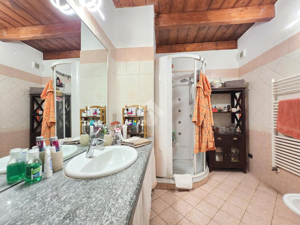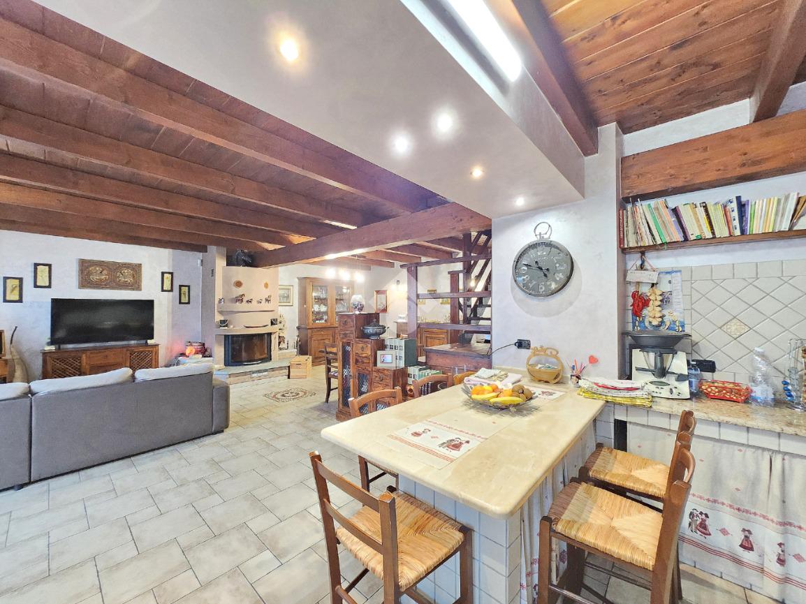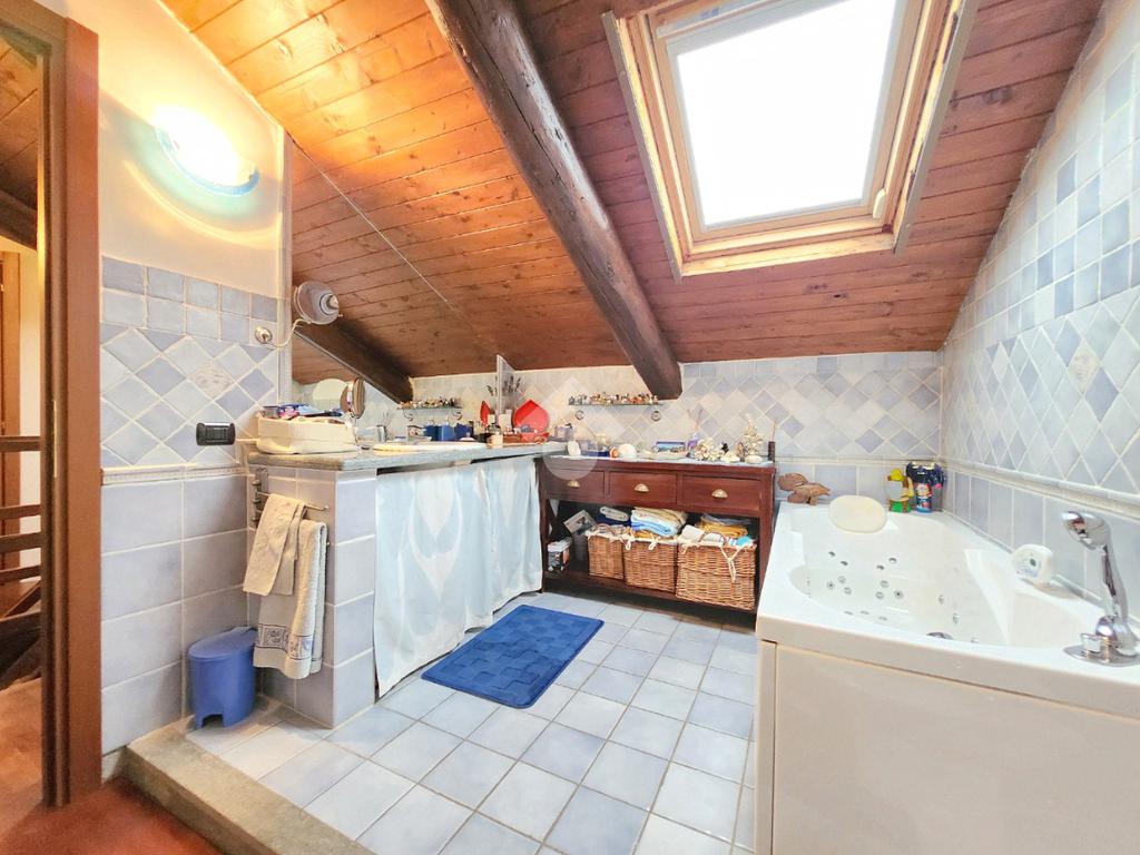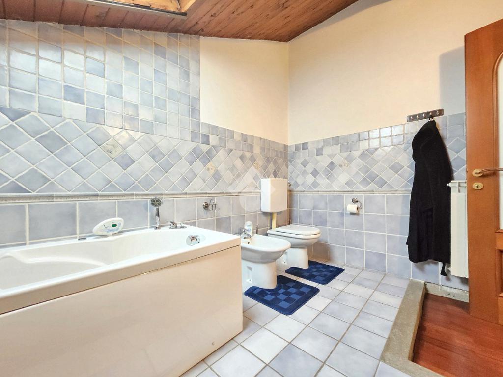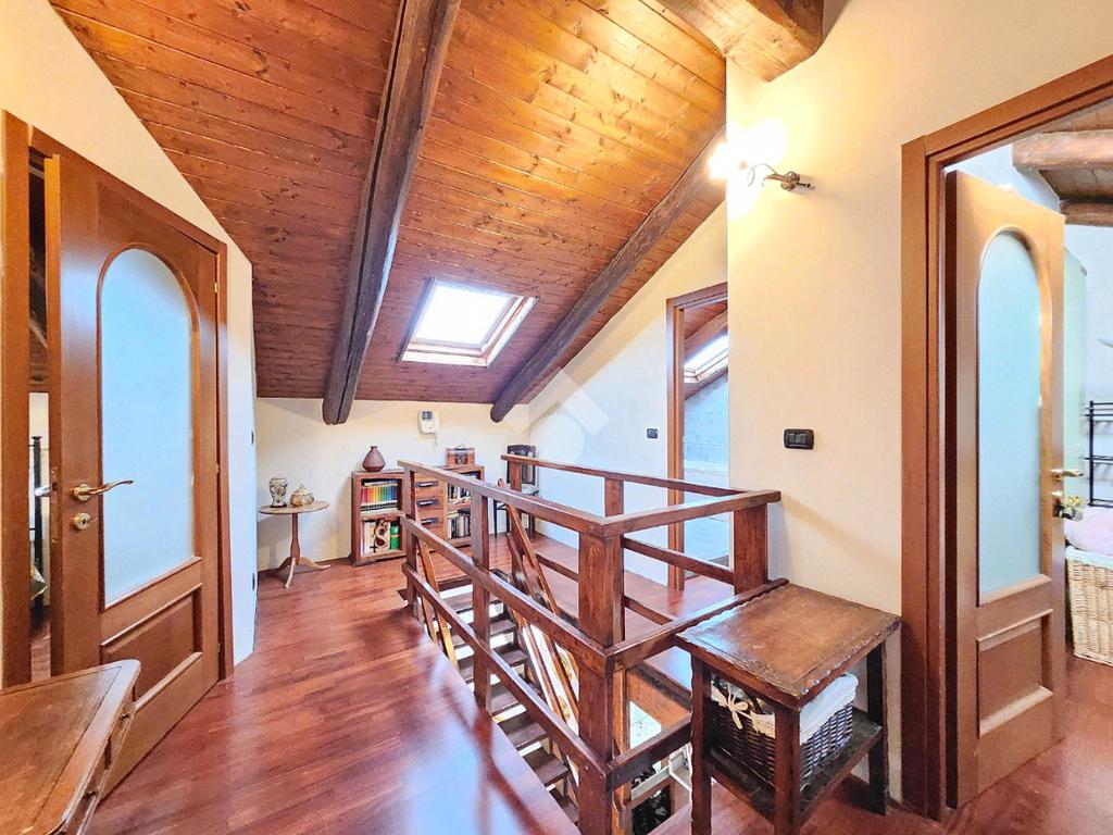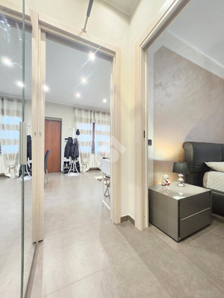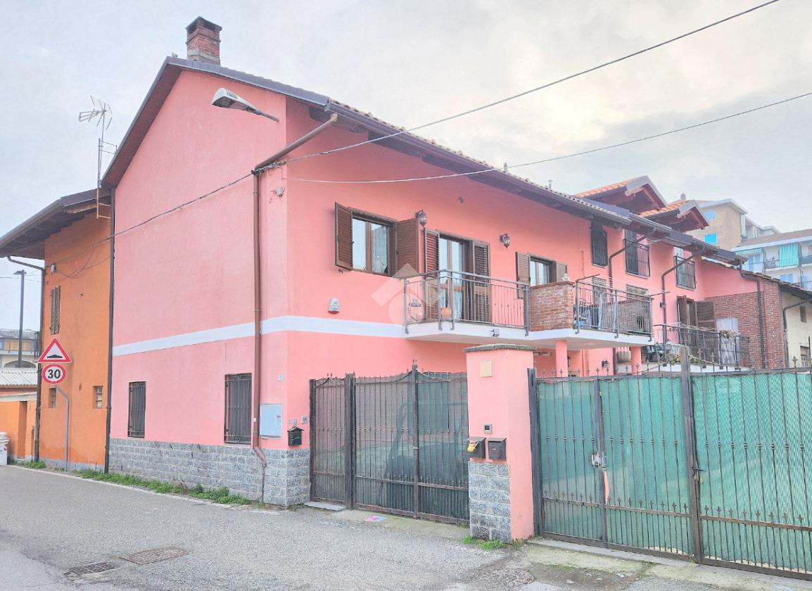 La zona giorno dell'appartamento più grande si presenta ampia e particolarmente luminosa. Il camino a legna è posato esattamente a metà dei circa 70 metri che occupano il salone che ospita la cucina abitabile a vista. Indubbiamente valorizzata dalle travi a vista che rifiniscono il piano, la zona giorno possiede l'accesso al terrazzino. La cucina in muratura è angolare e, la penisola ospita comodamente 5 posti a sedere. Adiacente ad essa è presente il primo dei 3 bagni che troviamo all'interno del fabbricato. Arricchito dalla doccia multifunzionale, quest'ultimo possiede la ventilazione forzata. Al centro del salone è stata posata la scala in legno a vista che consente di raggiungere il piano notte. Accolti dall'ampio disimpegno, il piano notte ospita 3 camere da letto e possiede una pavimentazione legnosa in ogni locale al di fuori del bagno. Oltre alle 3 camere da letto, sul piano è presente un grande ripostiglio, volendo utilizzabile come studio. Il bagno della zona notte è finestrato ed ospita la vasca idromassaggio, esattamente sotto il velux. L'appartamento più piccolo è al piano terreno e, non possiede nessuna barriera architettonica. L'accesso dalla porta blindata avviene direttamente sul grande soggiorno living con la cucina lineare a vista. Tutta la sua illuminazione è garantita dai faretti incassati nella controffittatura. Attraverso la comoda porta scrigno, è possibile raggiungere il disimpegno che funge anche da antibagno. Una seconda porta scrigno consente di accedere alla capiente camera da letto matrimoniale. Il terzo bagno, quello del piano terreno, è valorizzato dalla doccia con box in cristallo. Il cortile privato, antistante al fabbricato, possiede un accesso pedonale ed uno carraio che consente l'accesso alle auto. Tutta la struttura è stata oggetto di una completa ristrutturazione, dal piano terra al tetto, impianti compresi. Posizionato nella zona più centrale di alpignano, consente di raggiungere ogni servizio a piedi, mezzi pubblici compresi.