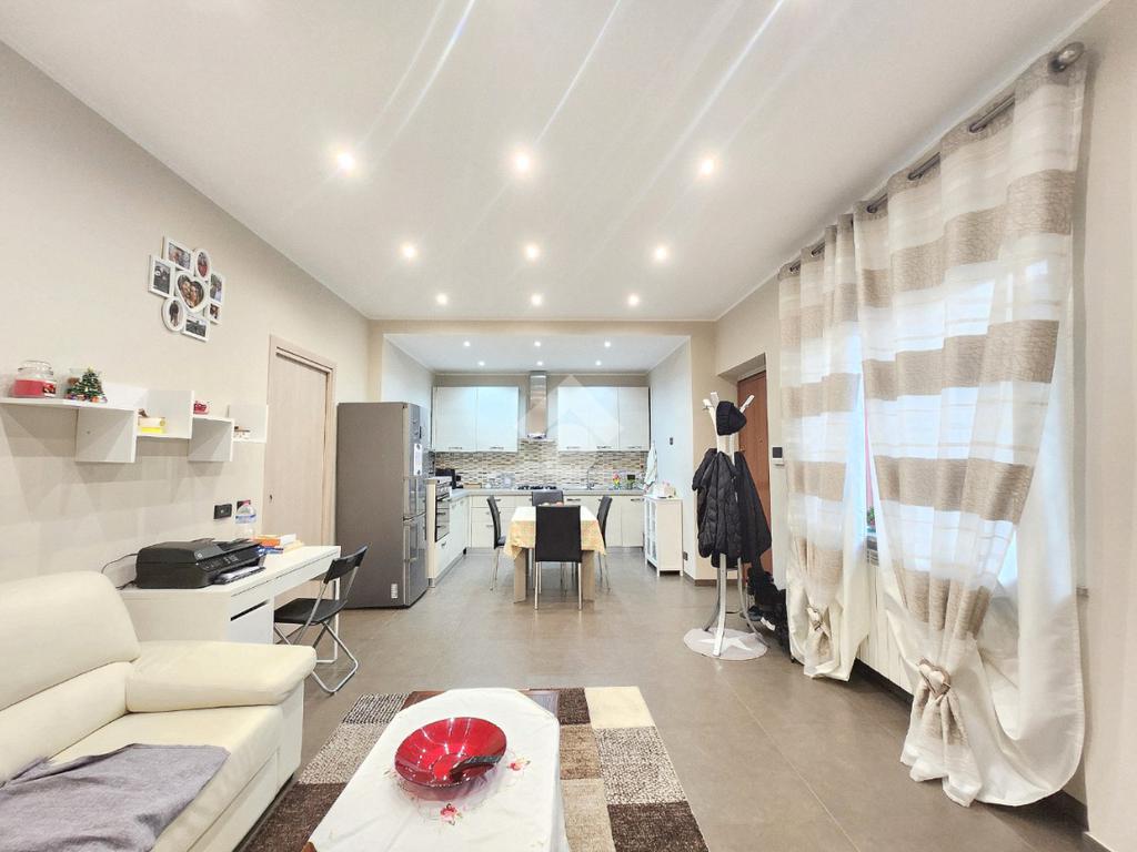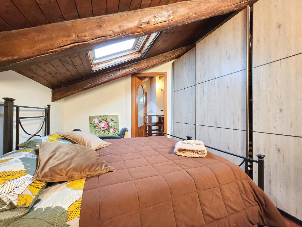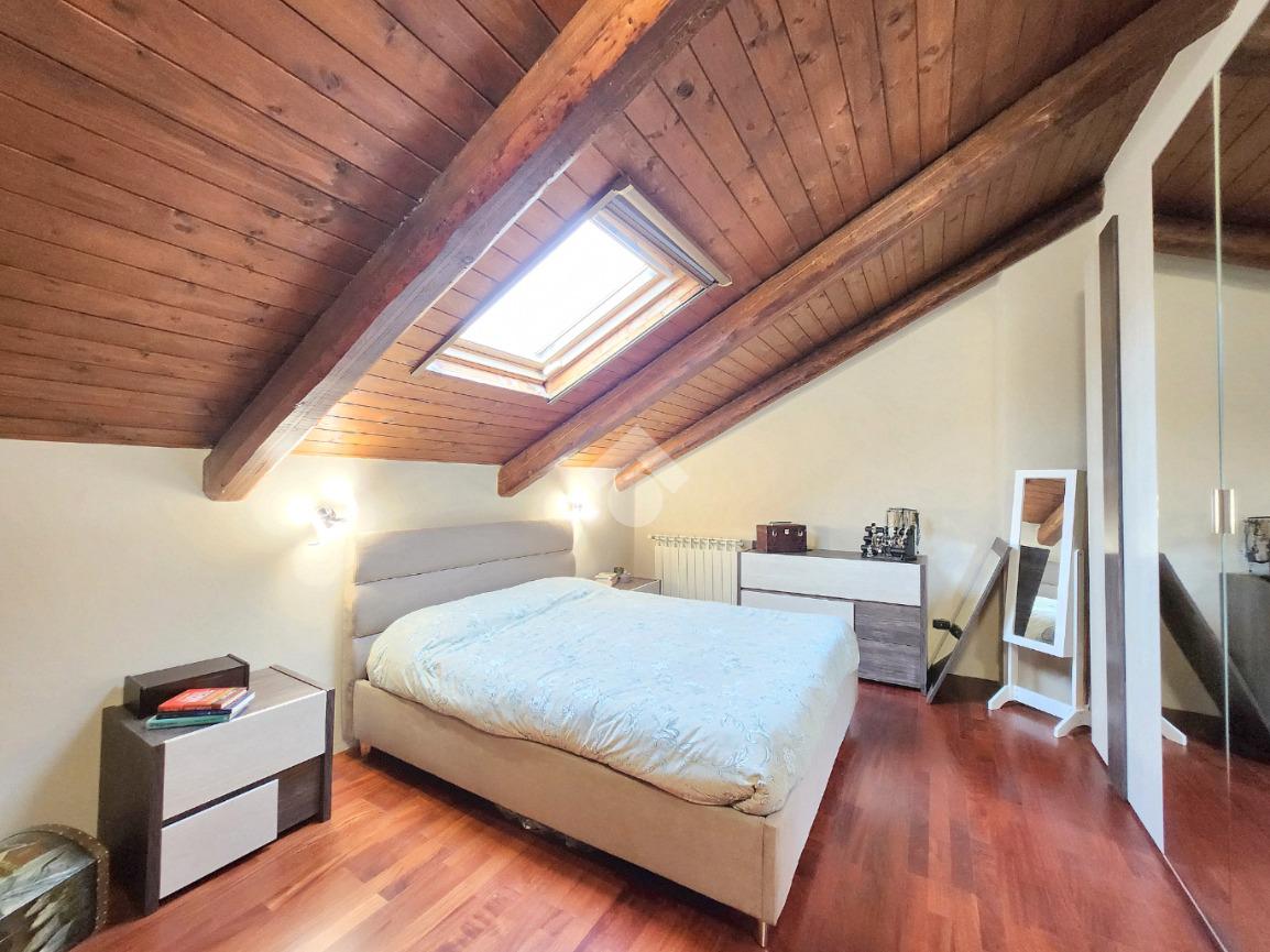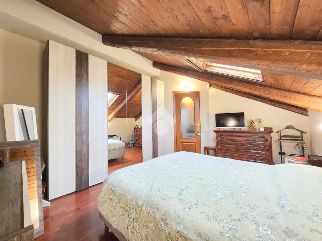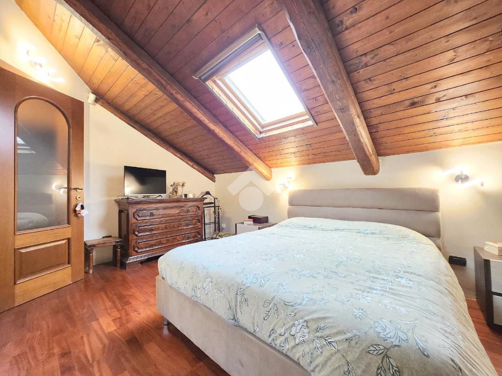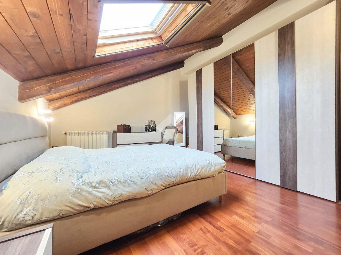 La zona giorno dell'appartamento più grande si presenta ampia e particolarmente luminosa. Il camino a legna è posato esattamente a metà dei circa 70 metri che occupano il salone che ospita la cucina abitabile a vista. Indubbiamente valorizzata dalle travi a vista che rifiniscono il piano, la zona giorno possiede l'accesso al terrazzino. La cucina in muratura è angolare e, la penisola ospita comodamente 5 posti a sedere. Adiacente ad essa è presente il primo dei 3 bagni che troviamo all'interno del fabbricato. Arricchito dalla doccia multifunzionale, quest'ultimo possiede la ventilazione forzata. Al centro del salone è stata posata la scala in legno a vista che consente di raggiungere il piano notte. Accolti dall'ampio disimpegno, il piano notte ospita 3 camere da letto e possiede una pavimentazione legnosa in ogni locale al di fuori del bagno. Oltre alle 3 camere da letto, sul piano è presente un grande ripostiglio, volendo utilizzabile come studio. Il bagno della zona notte è finestrato ed ospita la vasca idromassaggio, esattamente sotto il velux. L'appartamento più piccolo è al piano terreno e, non possiede nessuna barriera architettonica. L'accesso dalla porta blindata avviene direttamente sul grande soggiorno living con la cucina lineare a vista. Tutta la sua illuminazione è garantita dai faretti incassati nella controffittatura. Attraverso la comoda porta scrigno, è possibile raggiungere il disimpegno che funge anche da antibagno. Una seconda porta scrigno consente di accedere alla capiente camera da letto matrimoniale. Il terzo bagno, quello del piano terreno, è valorizzato dalla doccia con box in cristallo. Il cortile privato, antistante al fabbricato, possiede un accesso pedonale ed uno carraio che consente l'accesso alle auto. Tutta la struttura è stata oggetto di una completa ristrutturazione, dal piano terra al tetto, impianti compresi. Posizionato nella zona più centrale di alpignano, consente di raggiungere ogni servizio a piedi, mezzi pubblici compresi.