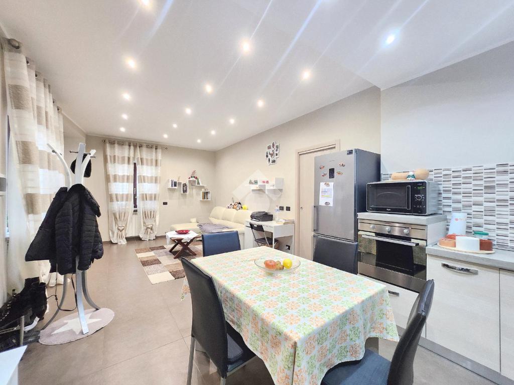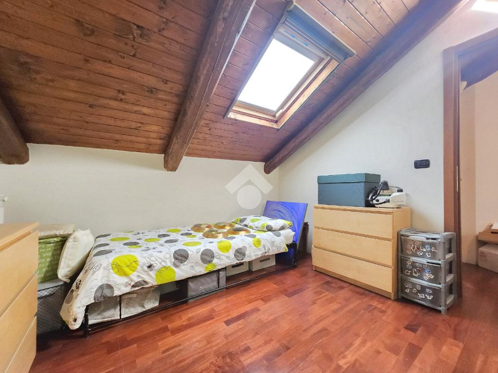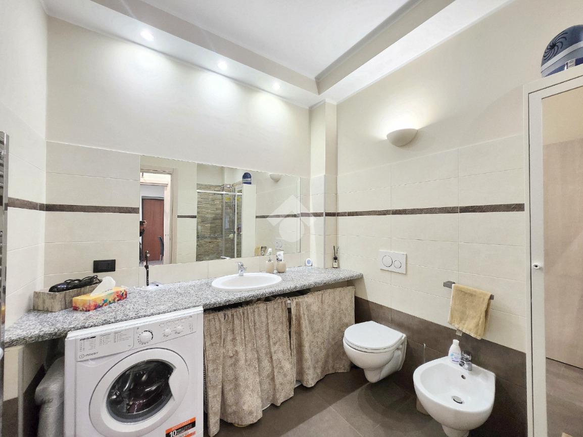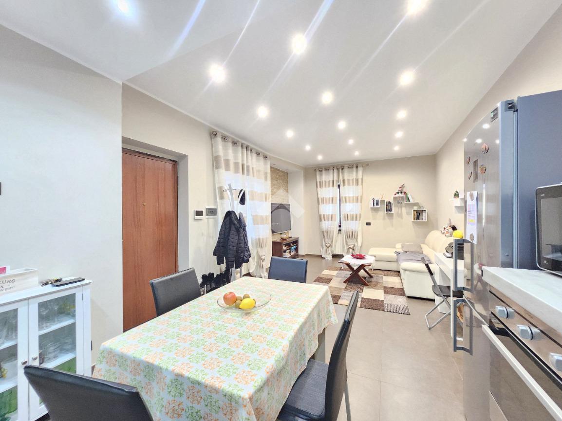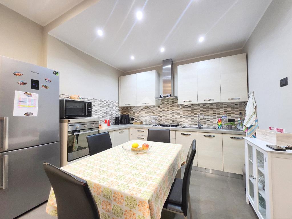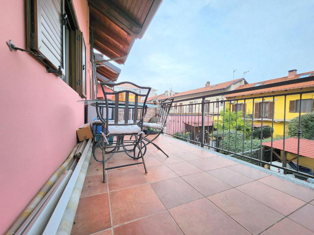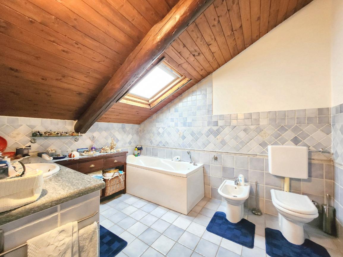 La zona giorno dell'appartamento più grande si presenta ampia e particolarmente luminosa. Il camino a legna è posato esattamente a metà dei circa 70 metri che occupano il salone che ospita la cucina abitabile a vista. Indubbiamente valorizzata dalle travi a vista che rifiniscono il piano, la zona giorno possiede l'accesso al terrazzino. La cucina in muratura è angolare e, la penisola ospita comodamente 5 posti a sedere. Adiacente ad essa è presente il primo dei 3 bagni che troviamo all'interno del fabbricato. Arricchito dalla doccia multifunzionale, quest'ultimo possiede la ventilazione forzata. Al centro del salone è stata posata la scala in legno a vista che consente di raggiungere il piano notte. Accolti dall'ampio disimpegno, il piano notte ospita 3 camere da letto e possiede una pavimentazione legnosa in ogni locale al di fuori del bagno. Oltre alle 3 camere da letto, sul piano è presente un grande ripostiglio, volendo utilizzabile come studio. Il bagno della zona notte è finestrato ed ospita la vasca idromassaggio, esattamente sotto il velux. L'appartamento più piccolo è al piano terreno e, non possiede nessuna barriera architettonica. L'accesso dalla porta blindata avviene direttamente sul grande soggiorno living con la cucina lineare a vista. Tutta la sua illuminazione è garantita dai faretti incassati nella controffittatura. Attraverso la comoda porta scrigno, è possibile raggiungere il disimpegno che funge anche da antibagno. Una seconda porta scrigno consente di accedere alla capiente camera da letto matrimoniale. Il terzo bagno, quello del piano terreno, è valorizzato dalla doccia con box in cristallo. Il cortile privato, antistante al fabbricato, possiede un accesso pedonale ed uno carraio che consente l'accesso alle auto. Tutta la struttura è stata oggetto di una completa ristrutturazione, dal piano terra al tetto, impianti compresi. Posizionato nella zona più centrale di alpignano, consente di raggiungere ogni servizio a piedi, mezzi pubblici compresi.