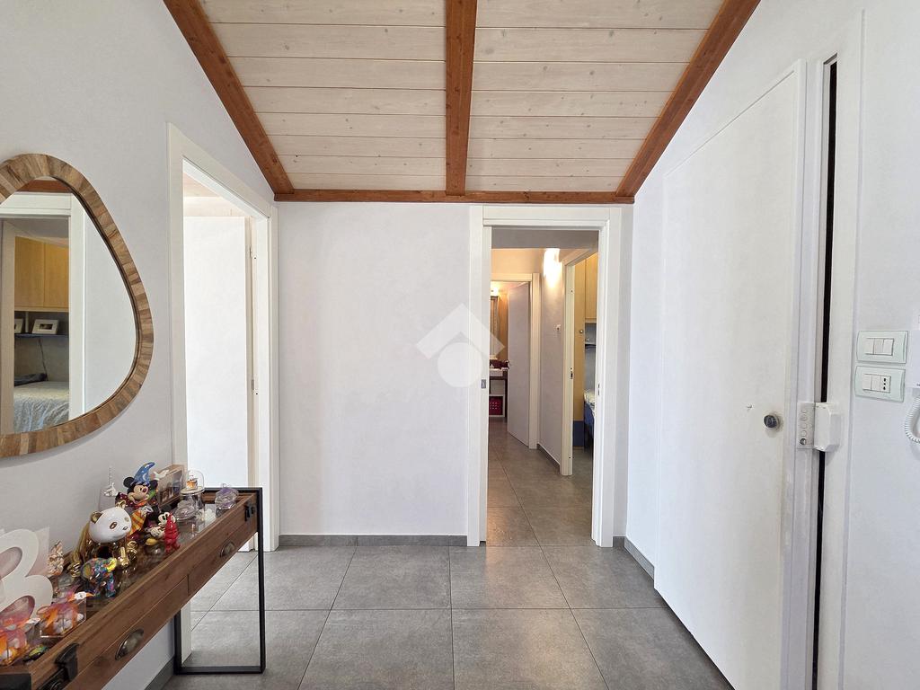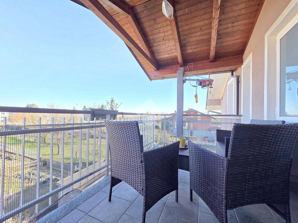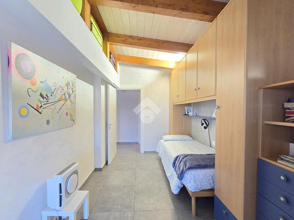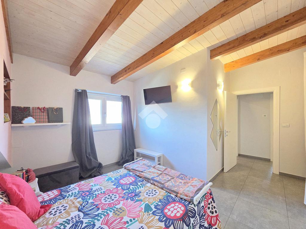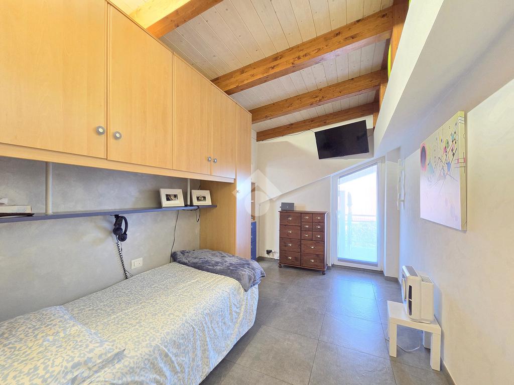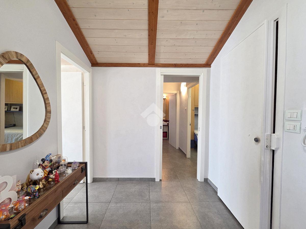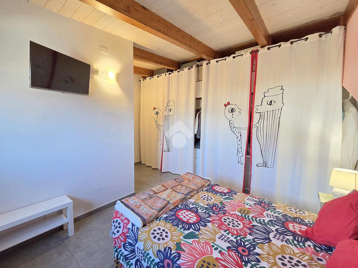 La zona giorno è particolarmente luminosa grazie ai cinque punti luce che ospita al suo interno, tra finestre, porte e finestre e Velux. Valorizzata dalle sue dimensioni che si avvicinano ai 50 metri, quest'ultima consente di percepire la completa e attenta ristrutturazione che ha toccato ogni dettaglio dell'appartamento. Progettata con l'isola centrale che accoglie piano cottura e lavandino, la zona giorno accede al terrazzo abitabile dal quale si gode di una piacevole vista panoramica. Dal lato opposto, il soggiorno doppio, ospita la zona divani e TV con le 2 finestre che la caratterizzano. L'ingresso dalla porta blindata è preceduto dal funzionale ripostiglio sul pianerottolo, che funge da scarpiera e da appendiabiti. Accedendo all'immobile veniamo accolti dal grande disimpegno aperto sulla zona giorno, dal quale è possibile raggiungere la prima delle 3 camere. Finestrata e molto alta nelle sue pareti, quest'ultima è attualmente utilizzata come studio. Attraverso la porta a scrigno, è possibile raggiungere il disimpegno della zona notte che serve le altre 2 camere da letto. La prima, specificatamente ampia, è stata progettata per ospitare la lunga cabina armadi a vista. La seconda, oltre ad accedere allo stesso terrazzo della zona giorno, possiede il bagno privato. Accessibile dalla porta a scomparsa, quest'ultimo è finestrato ed è stato rifinito in modo straordinario. Lavandino e sanitari sospesi sono nel primo ambiente, mentre la doccia walk-in è disimpegnata da un muro di fronte alla finestra. Dallo stesso disimpegno della zona notte, si accede al secondo bagno caratterizzato dalle sue dimensioni. Il lavandino in muratura rifinito in mosaico rosso, confina con il muro che ospita i sanitari sospesi. Di fronte ad essi è presente la doppia doccia in cristallo Walk-in con piatto a filo pavimento, rifinito con lo stesso mosaico del lavandino. Al suo interno, il secondo bagno, ospita anche la comoda lavanderia accessibile da una porta scorrevole. Internamente, oltre al lavello a mano, trovano spazio anche lavatrice ed asciugatrice. Al piano terreno la proprietà comprende anche 2 posti auto scoperti e 2 coperti. Finestrato su tutti e quattro i lati, l'appartamento è posizionato al primo piano rialzato di una villa bifamiliare e possiede il tetto in legno bianco, completamente a vista. Priva di spese condominiali, la villa offre molti spazi comuni ed è ubicata in una posizione ricca di privacy. È possibile acquistare un terreno attiguo alla villa, collegato direttamente alla proprietà ad € 10.000. Il riscaldamento è autonomo a gpl e, i bassi consumi sono stati resi possibili grazie all'attenta coibentazione di tetto e muri perimetrali.