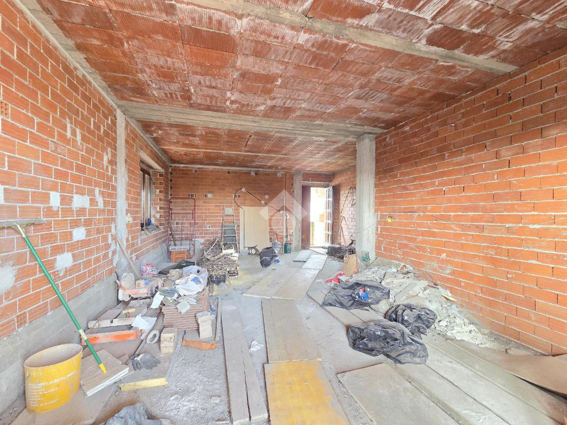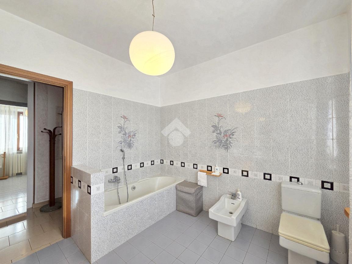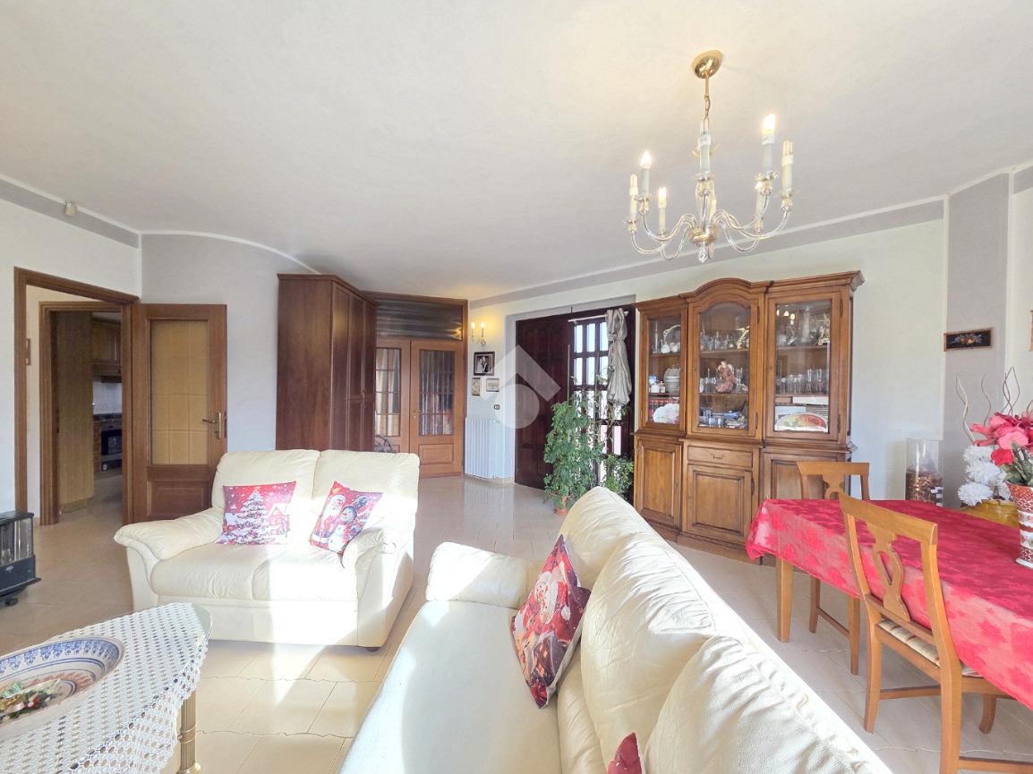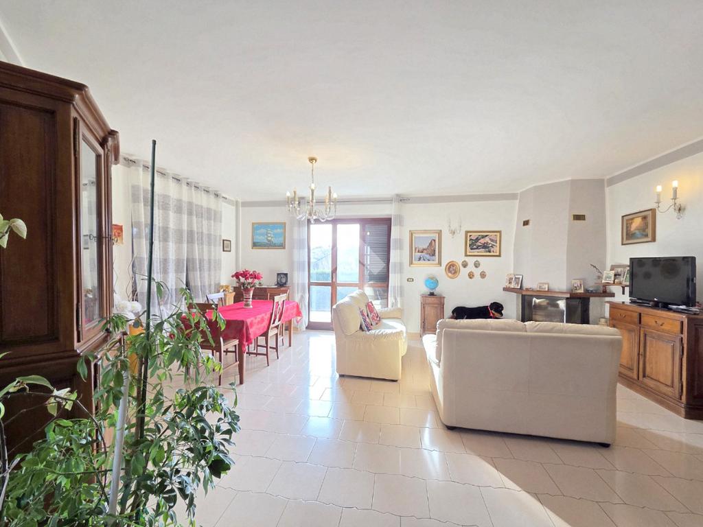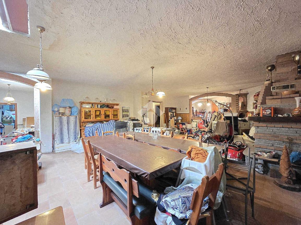 Libera su 4 lati e particolarmente esposta al sole, la villa bifamiliare si presenta rifinita in paramano e con aree esterne adibite a verde ed a grandi terrazzi vivibili. L'appartamento principale è al piano terreno e, i suoi spazi interni sono ampi e soleggiati. Il primo locale ad accoglierci è il doppio salone, caratterizzato dal cammino angolare ventilato e dai 3 punti luce che ospita al suo interno. Da quest'ultimo è possibile accedere al primo dei tanti ripostigli presenti nella casa. La cucina è ampiamente abitabile e attualmente ospita due pareti attrezzate. Direttamente collegata ad essa è l'area esterna terrazzata che permette di essere sfruttata al meglio grazie al collegamento con il doppio salone. Attraverso il corridoio angolare che collega l'accesso ad ogni locale della villa, si raggiunge il primo dei 2 bagni finestati presenti sul piano. Caratterizzato dalle sue dimensioni, questo ospita la vasca ed è più vicino alla zona giorno. La prima delle 3 camere da letto è angolare e possiede pareti molto lunghe. Anche questa è collegata con l'area esterna. Adiacente a ad essa è stato progettato il secondo bagno finestrato, all'interno del quale trovano spazio vasca e doccia. Attigue tra loro, sono le altre 2 camere da letto matrimoniali accessibili percorrendo il corridoio fino al fondo. Anche qui è presente un altro ripostiglio. La scala in muratura porta al piano interrato e finisce in un grande disimpegno. Attraverso quest'ultimo è raggiungibile la taverna, straordinariamente grande. Il camino aperto, il locale bar e la zona cucina, la rendono particolarmente sfruttabile. Attigui alla taverna sono un grande ripostiglio e la comoda legnaia. Il bagno del piano interrato è ampio ed ospita la doccia angolare. Comoda e particolarmente spaziosa, è la lavanderia attualmente adibita a palestra. Sullo stesso piano, accessibili da 2 carrai scorrevoli diversi, sono presenti 2 box auto tripli che si rendono utili ad ogni destinazione d'uso. Entrambi raggiungono circa 200 metri di dimensione. Al primo piano, accessibile con un ingresso indipendente, è presente il secondo appartamento, ugualmente libero su 4 lati e con ampi terrazzi collegati ad esso. L'abitazione del piano superiore è già stata suddivisa, ma non è mai stata ultimata ed abitata. Attualmente la sua progettazione prevede l'ingresso living nel soggiorno con la cucina vista e, il disimpegno che serve le due camere matrimoniali oltre al bagno finestrato. Non mancano le aree esterne terrazzate anche su questo piano. A completare la proprietà è la mansarda raggiungibile dall'appartamento al piano superiore. Particolarmente adatta per chi necessita di grandi dimensioni, la bifamiliare è inserita in un contesto abitativo di sole ville e possiede 2 ingressi indipendenti tra loro. Distante 400 metri dalla centralissima Piazza Girolina, ogni servizio è raggiungibile a piedi.