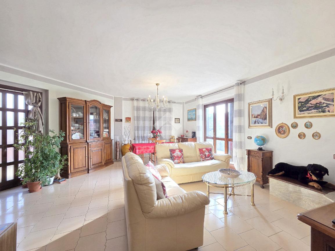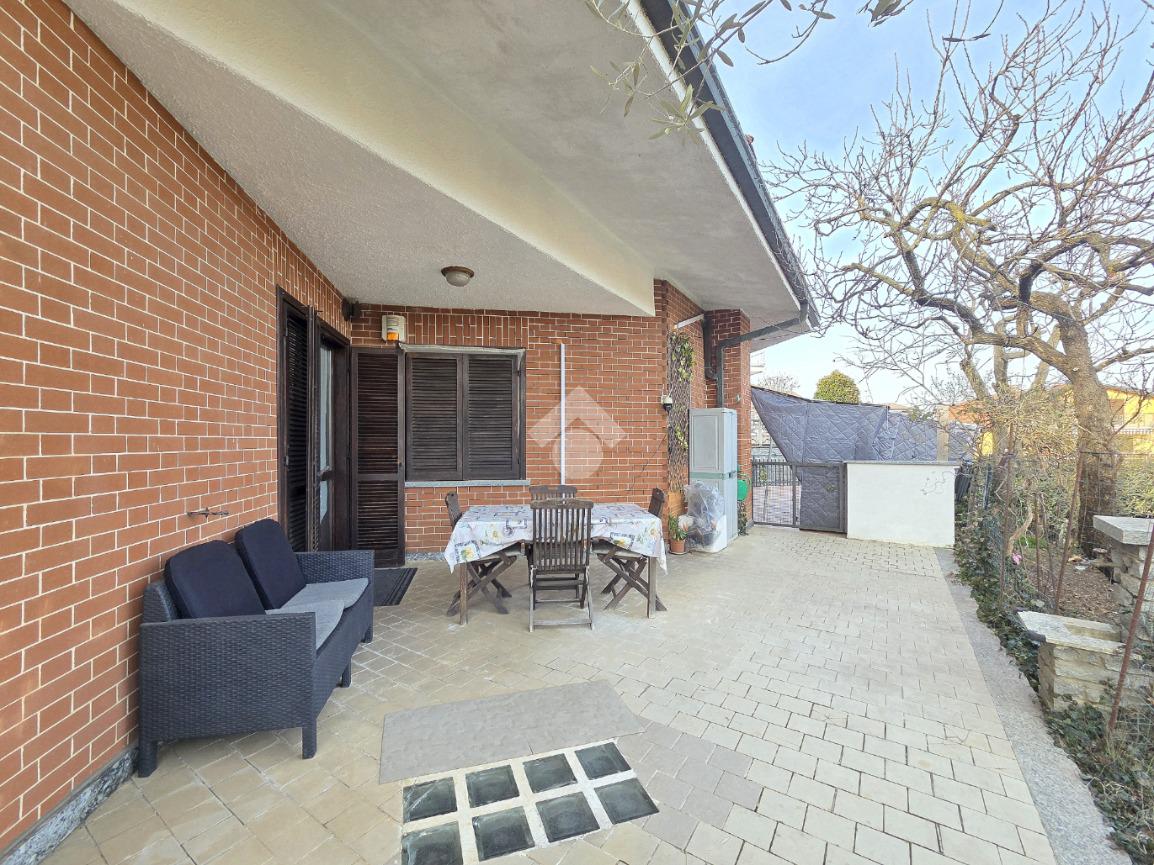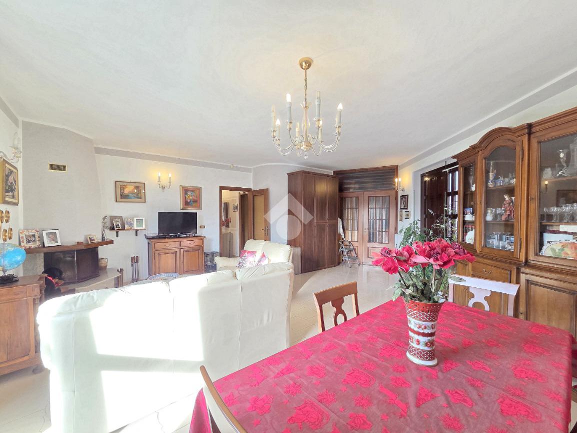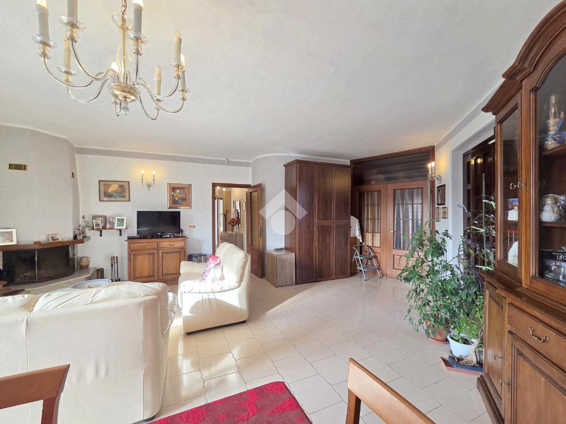 Libera su 4 lati e particolarmente esposta al sole, la villa bifamiliare si presenta rifinita in paramano e con aree esterne adibite a verde ed a grandi terrazzi vivibili. L'appartamento principale è al piano terreno e, i suoi spazi interni sono ampi e soleggiati. Il primo locale ad accoglierci è il doppio salone, caratterizzato dal cammino angolare ventilato e dai 3 punti luce che ospita al suo interno. Da quest'ultimo è possibile accedere al primo dei tanti ripostigli presenti nella casa. La cucina è ampiamente abitabile e attualmente ospita due pareti attrezzate. Direttamente collegata ad essa è l'area esterna terrazzata che permette di essere sfruttata al meglio grazie al collegamento con il doppio salone. Attraverso il corridoio angolare che collega l'accesso ad ogni locale della villa, si raggiunge il primo dei 2 bagni finestati presenti sul piano. Caratterizzato dalle sue dimensioni, questo ospita la vasca ed è più vicino alla zona giorno. La prima delle 3 camere da letto è angolare e possiede pareti molto lunghe. Anche questa è collegata con l'area esterna. Adiacente a ad essa è stato progettato il secondo bagno finestrato, all'interno del quale trovano spazio vasca e doccia. Attigue tra loro, sono le altre 2 camere da letto matrimoniali accessibili percorrendo il corridoio fino al fondo. Anche qui è presente un altro ripostiglio. La scala in muratura porta al piano interrato e finisce in un grande disimpegno. Attraverso quest'ultimo è raggiungibile la taverna, straordinariamente grande. Il camino aperto, il locale bar e la zona cucina, la rendono particolarmente sfruttabile. Attigui alla taverna sono un grande ripostiglio e la comoda legnaia. Il bagno del piano interrato è ampio ed ospita la doccia angolare. Comoda e particolarmente spaziosa, è la lavanderia attualmente adibita a palestra. Sullo stesso piano, accessibili da 2 carrai scorrevoli diversi, sono presenti 2 box auto tripli che si rendono utili ad ogni destinazione d'uso. Entrambi raggiungono circa 200 metri di dimensione. Al primo piano, accessibile con un ingresso indipendente, è presente il secondo appartamento, ugualmente libero su 4 lati e con ampi terrazzi collegati ad esso. L'abitazione del piano superiore è già stata suddivisa, ma non è mai stata ultimata ed abitata. Attualmente la sua progettazione prevede l'ingresso living nel soggiorno con la cucina vista e, il disimpegno che serve le due camere matrimoniali oltre al bagno finestrato. Non mancano le aree esterne terrazzate anche su questo piano. A completare la proprietà è la mansarda raggiungibile dall'appartamento al piano superiore. Particolarmente adatta per chi necessita di grandi dimensioni, la bifamiliare è inserita in un contesto abitativo di sole ville e possiede 2 ingressi indipendenti tra loro. Distante 400 metri dalla centralissima Piazza Girolina, ogni servizio è raggiungibile a piedi.